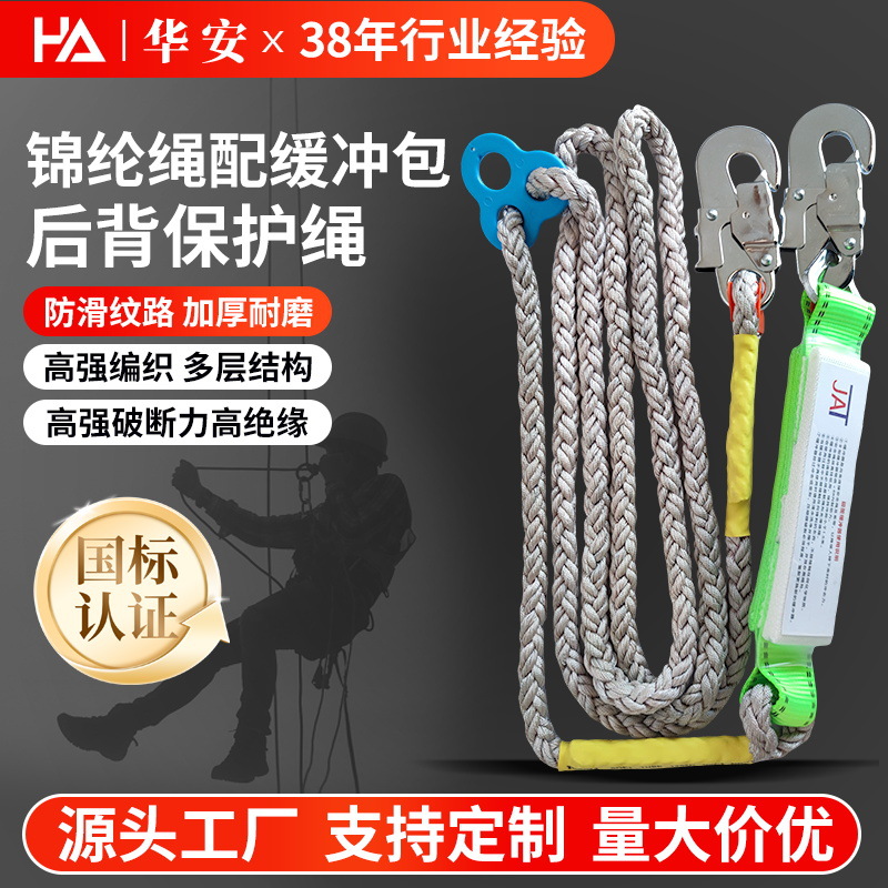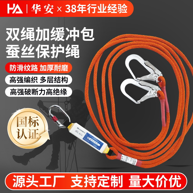 シルクバック保護ロープダブルフック緩衝バッグ落下防止安全ロープ屋外ロッククライミングスポーツ登山安全ロープ