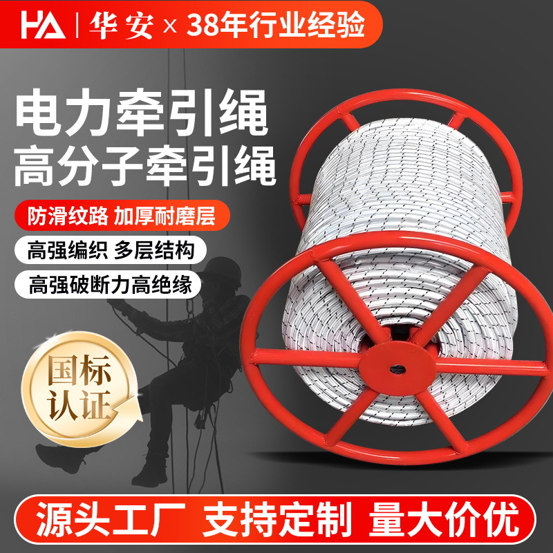 ポリマー電動牽引ロープ、高所作業落下防止安全ロープ、電気工事用伸線ロープ、静的ロープ