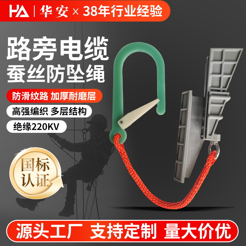 高所作業電気技師用落下防止ロープ、電力建設用高圧保護ロープ、シルクバイパスケーブル、落下防止ロープ