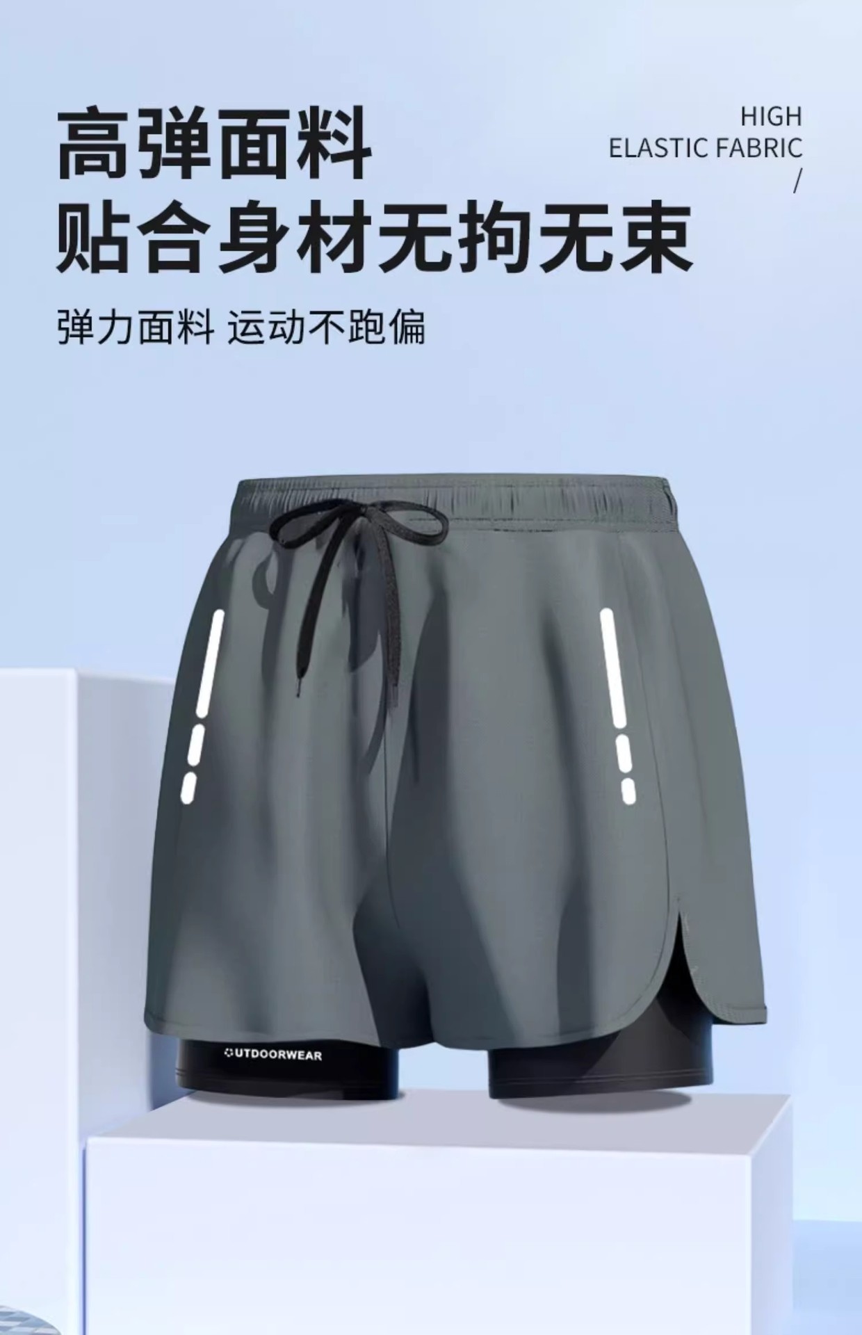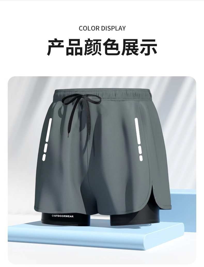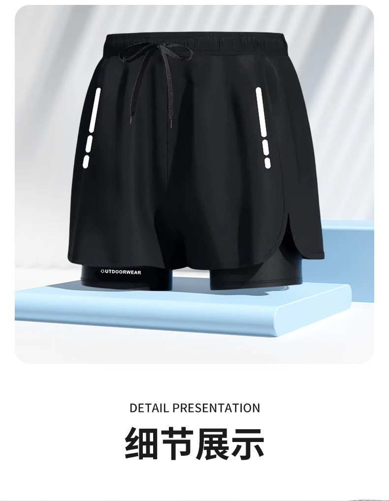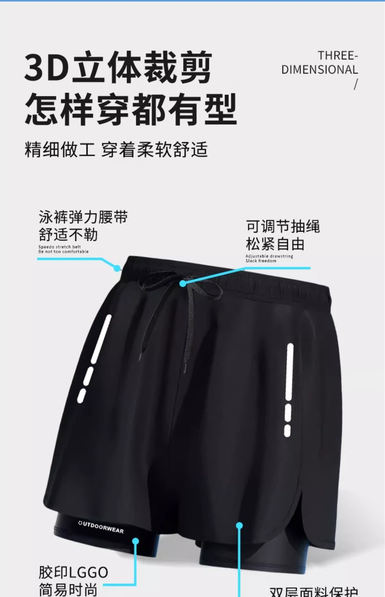 二重水泳パンツ男海辺サーフィンパンツ温泉男ビーチパンツ運動気まずい速乾パンツロゴカスタマイズ