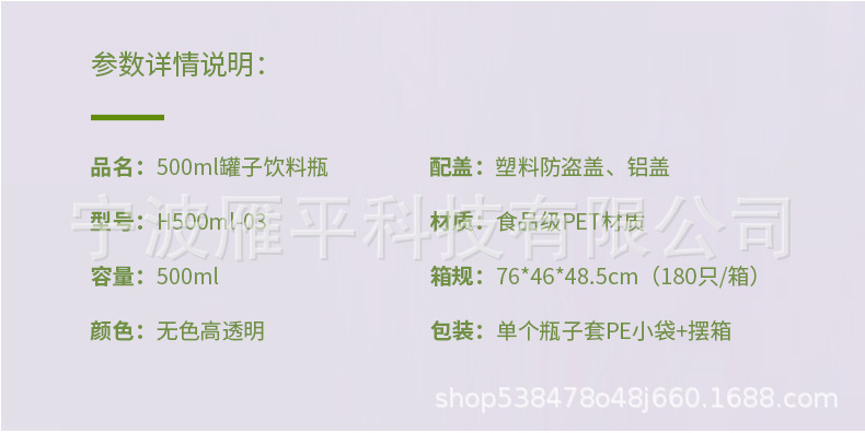 仕様とモデル 500ml瓶ジュースボトル、プラスチック蓋,500ml瓶ジュースボトル、アルミ蓋