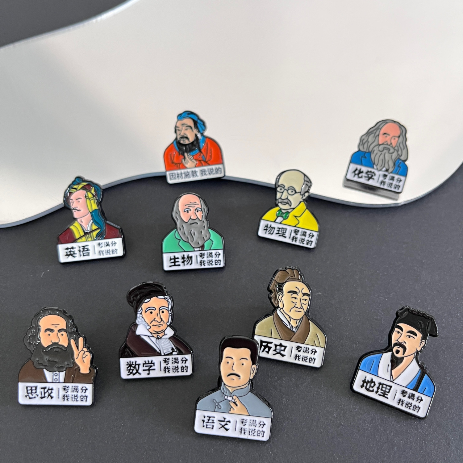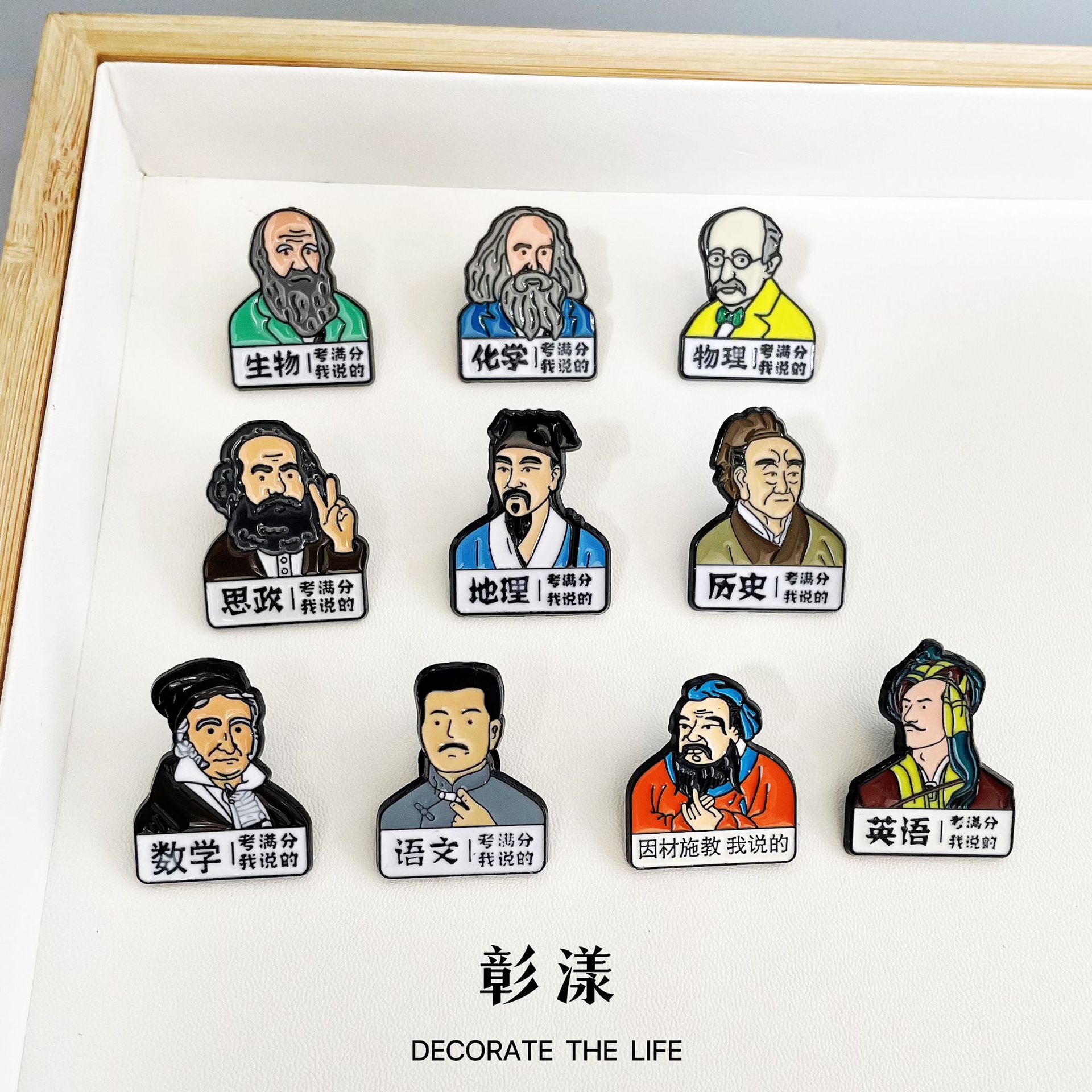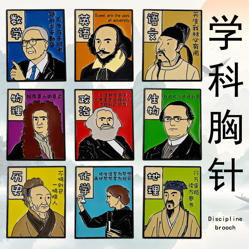 创意励志学科胸针学习年代名人物徽章笔袋书包配饰送学生礼物徽章