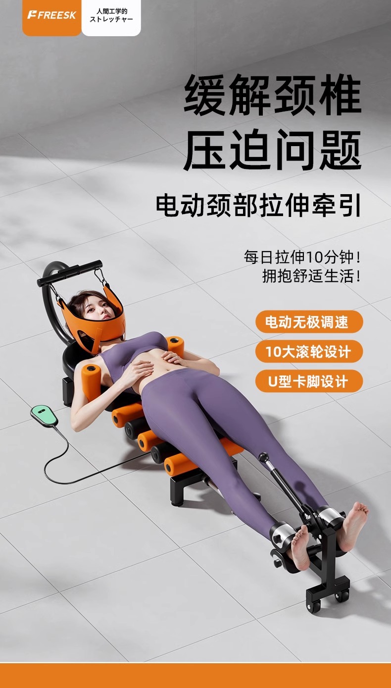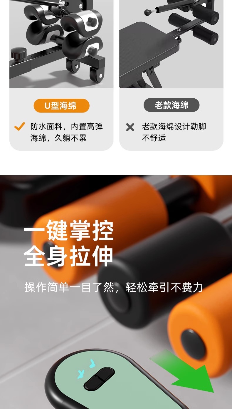 规格 手动款(45度颈椎牵引+滚轮+4U型卡脚),电动标准款(滚轮设计+4个U型卡脚),电动升级款(45度颈椎牵引+滚轮+4U型卡脚),电动豪华款(45度颈椎牵引+滚轮+4U型卡脚+充气腰垫),电动专业款(45度颈椎牵引+滚轮+4U型卡脚+腰部绑带),电动专业PRO款(45度颈椎牵引+滚轮+4U型卡脚+腰部绑带+充气腰垫),电动旗舰款(45度颈椎牵引+滚轮+4U型卡脚+上下腰部绑带),电动顶配款(45度颈椎牵引+滚轮+4U型卡脚+上下腰部绑带+充气腰垫)
