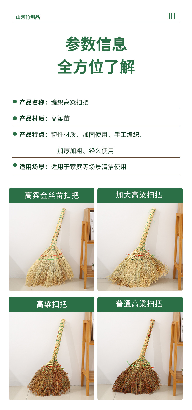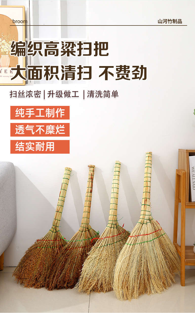 高粱扫把家用手工编织老式笤帚加厚户外庭院大号地面清洁扫帚工具