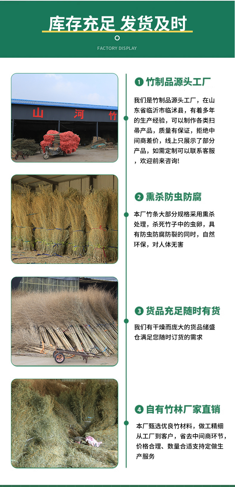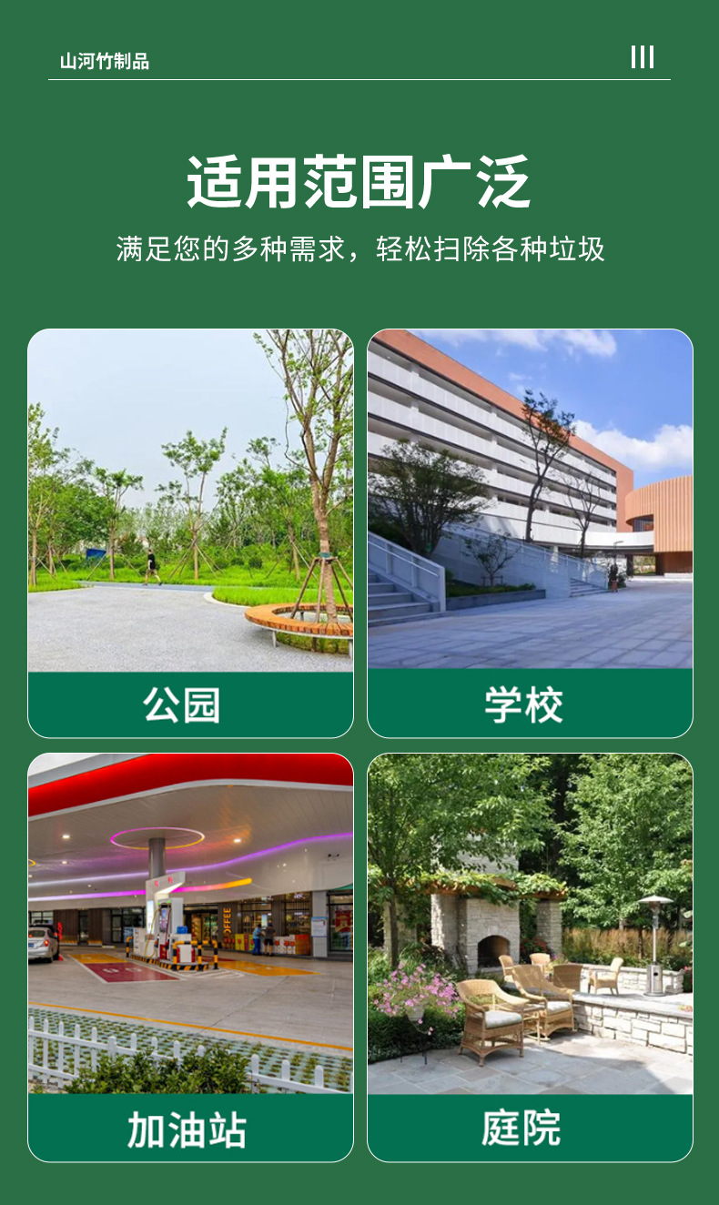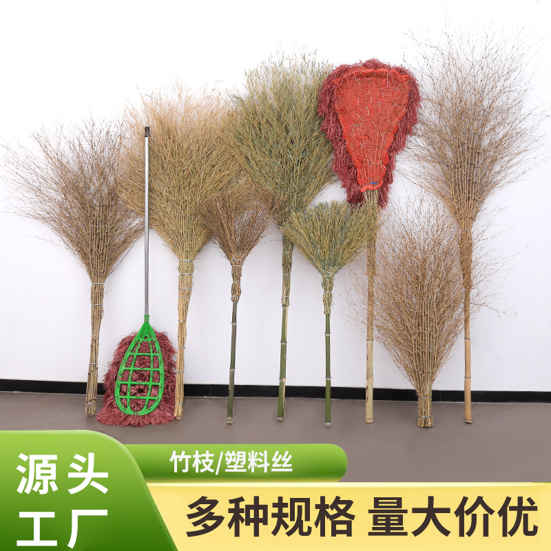 葉付き竹竿の大型ほうき、道路や庭の掃き掃除に使える一体型清掃ほうき、工場清掃用大型ほうき
