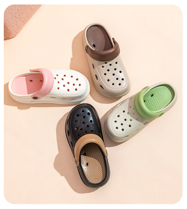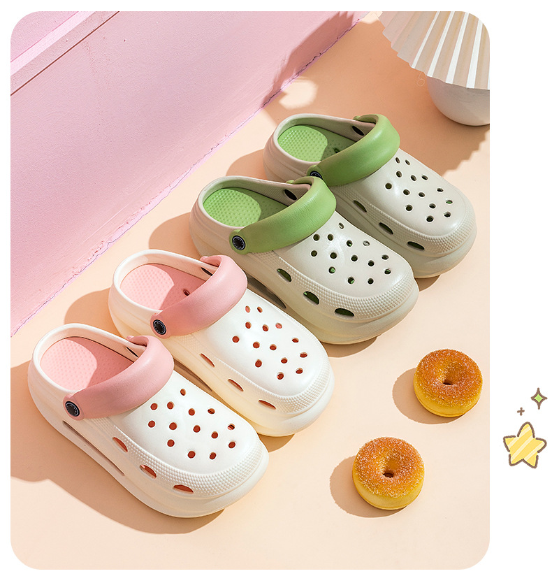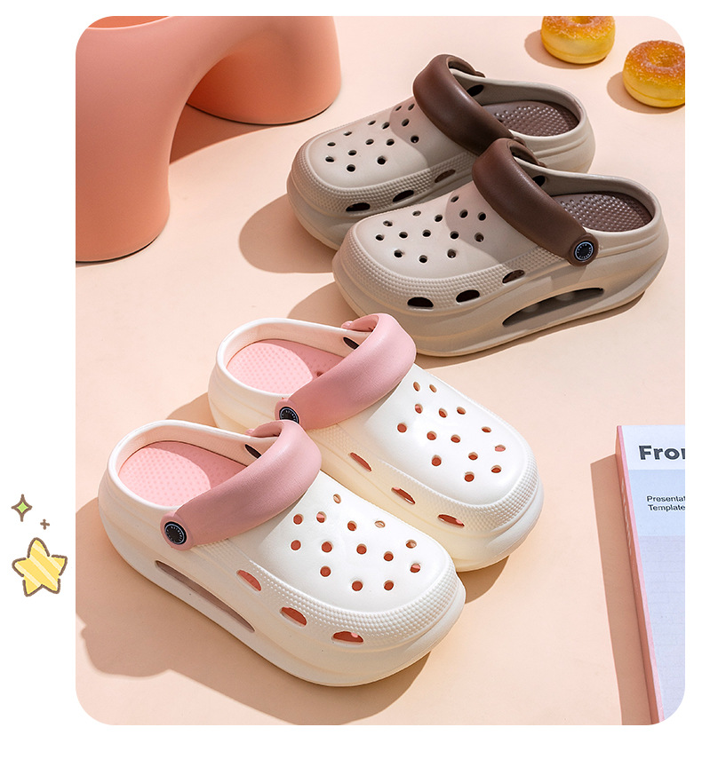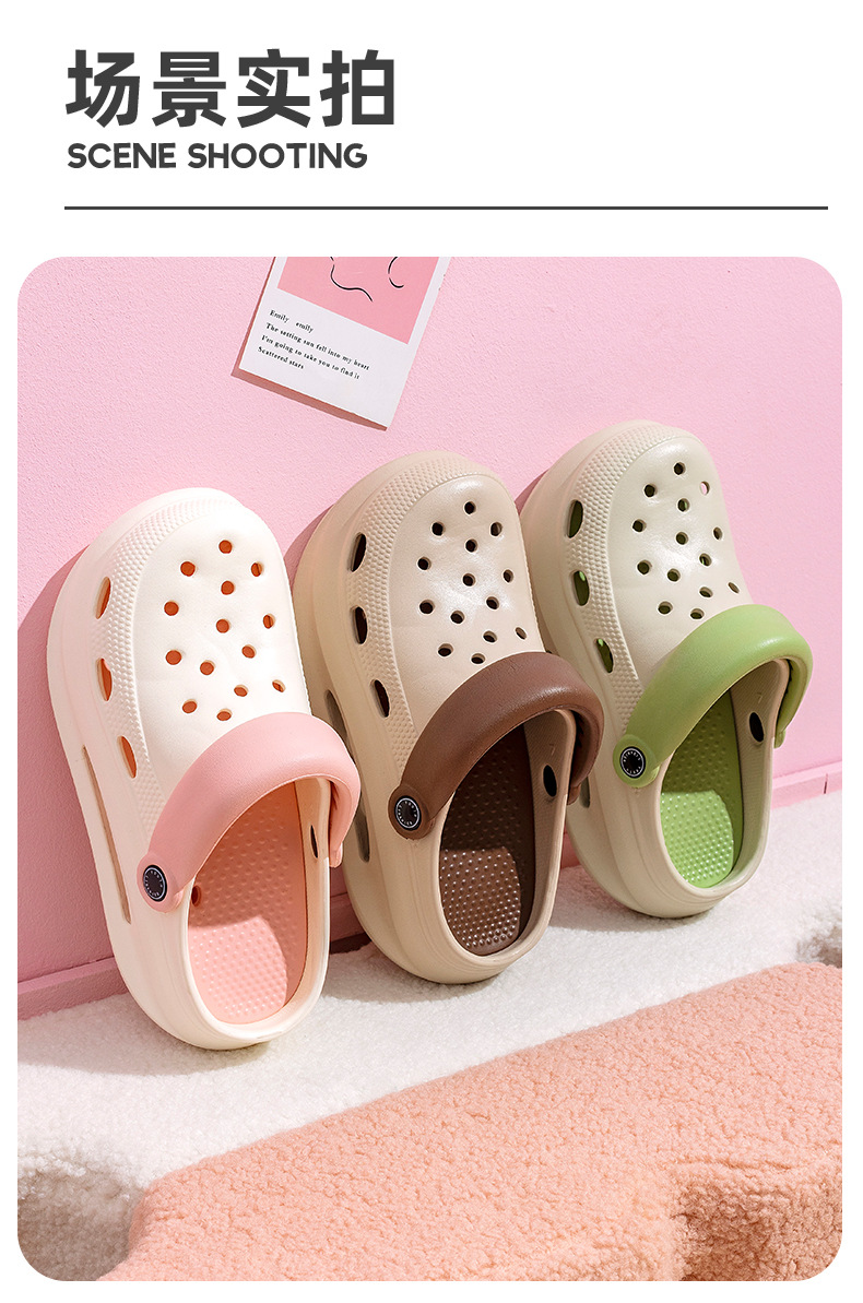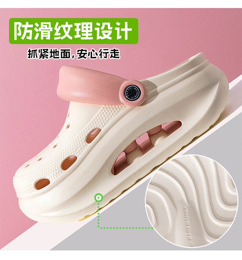 2025厚い底の穴の靴の女性の夏の新型の外は滑り止めの柔らかい底を着て高くなります。
