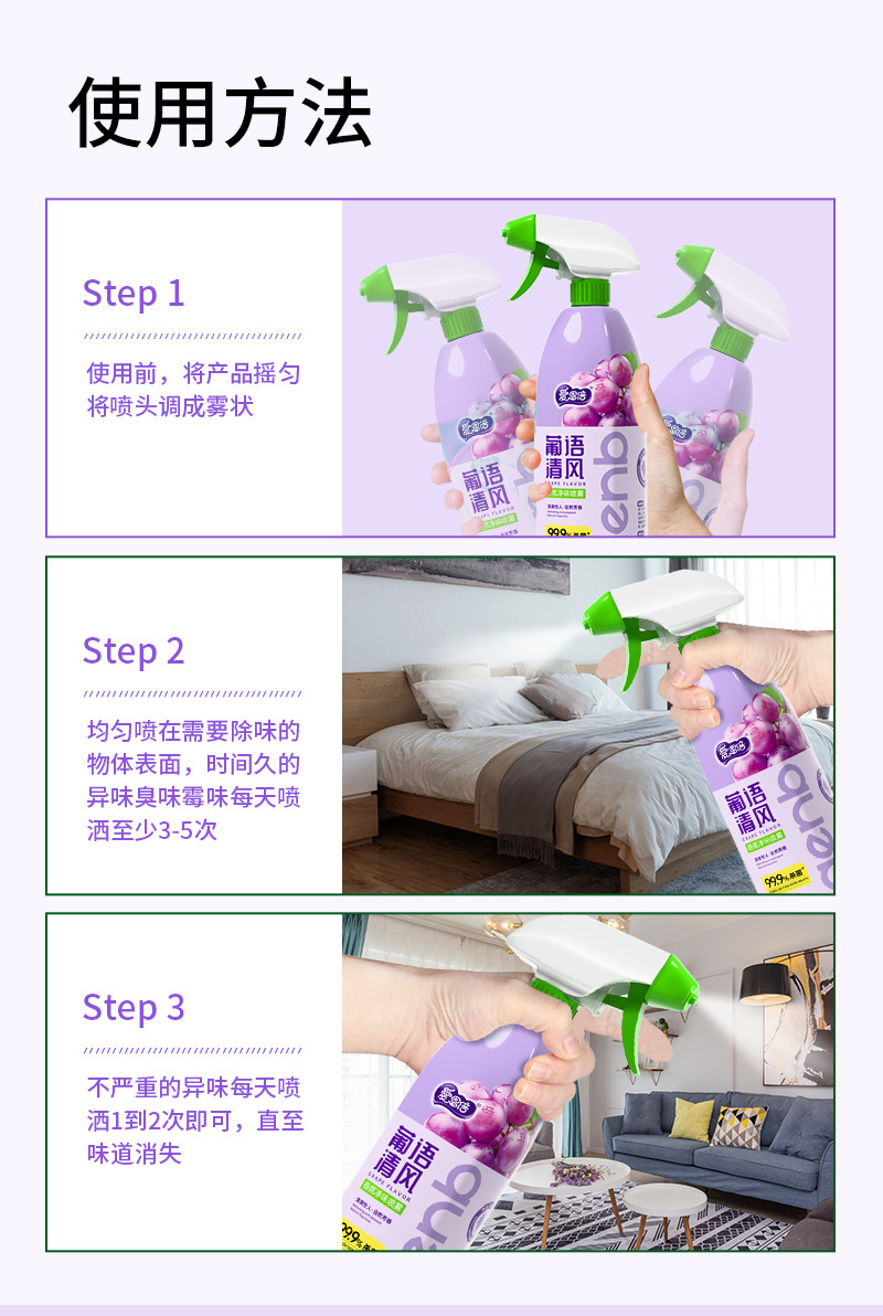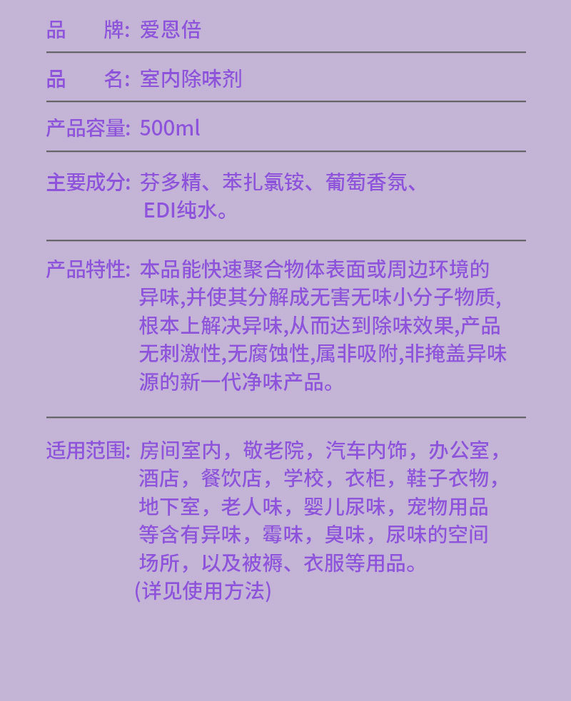 爱恩倍空气清新剂葡萄香房间卧室卫生间宿舍持久留香500g*1瓶代发