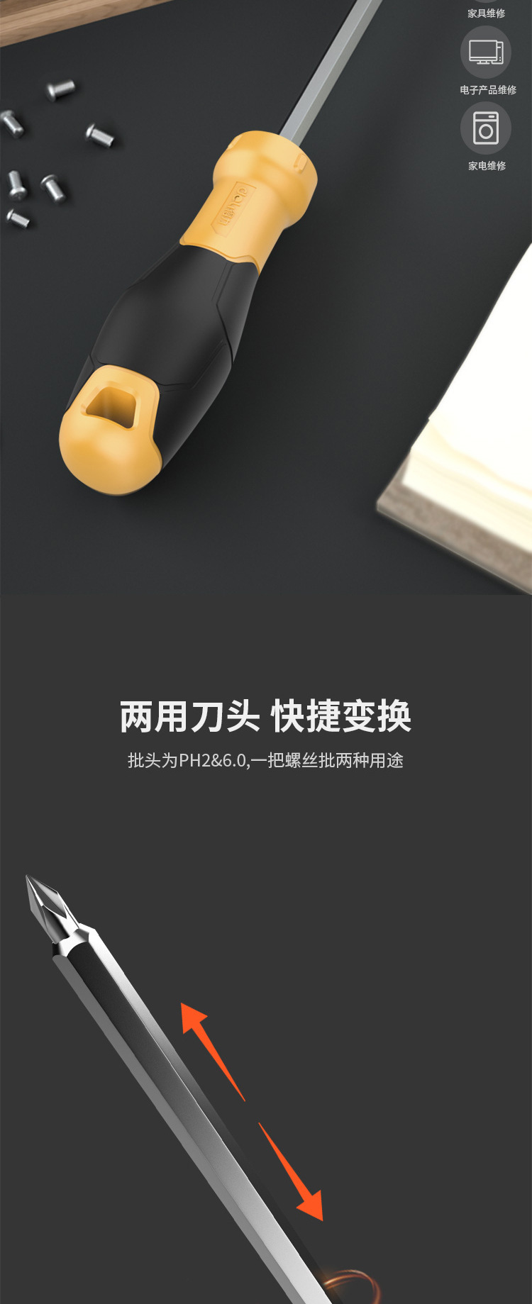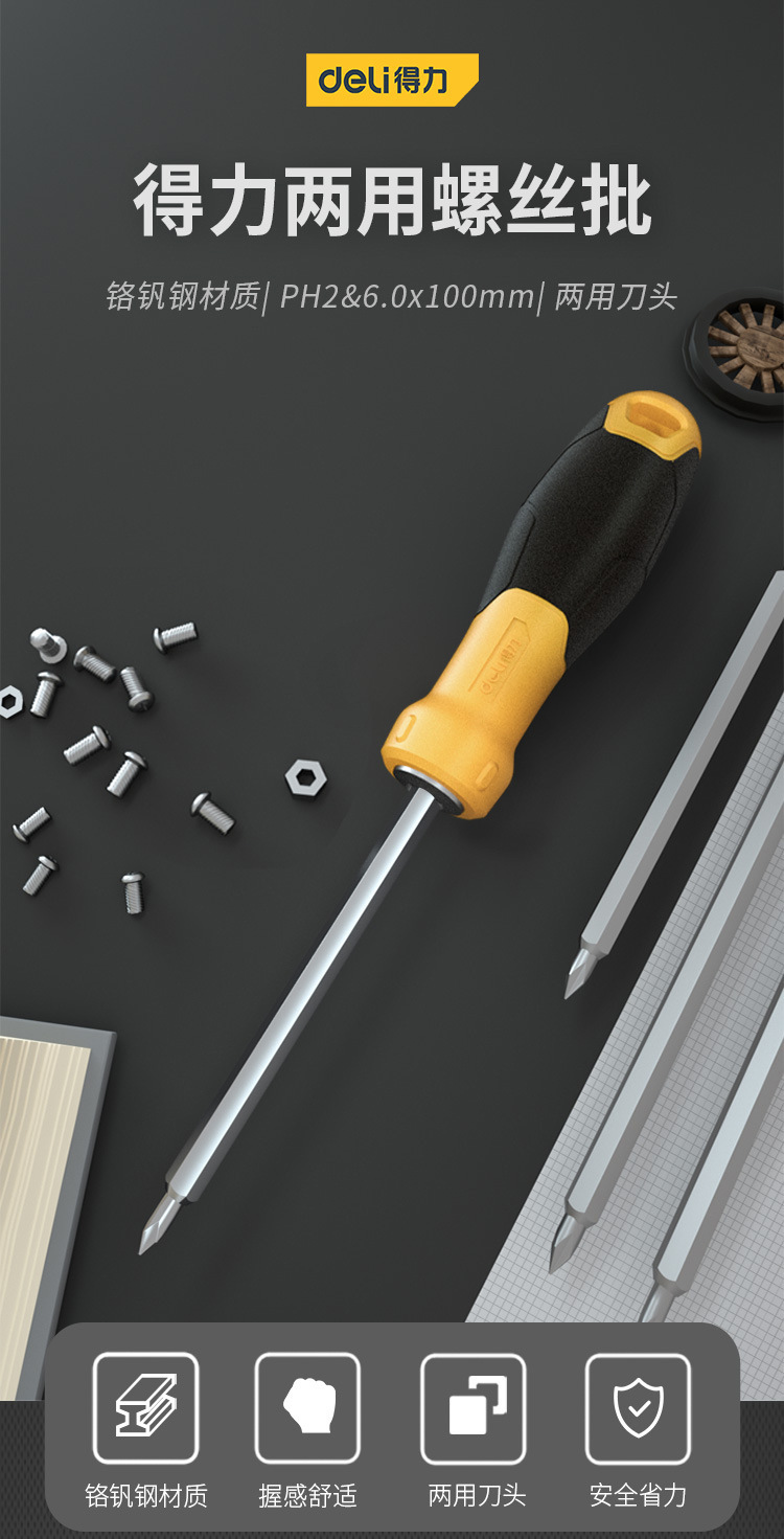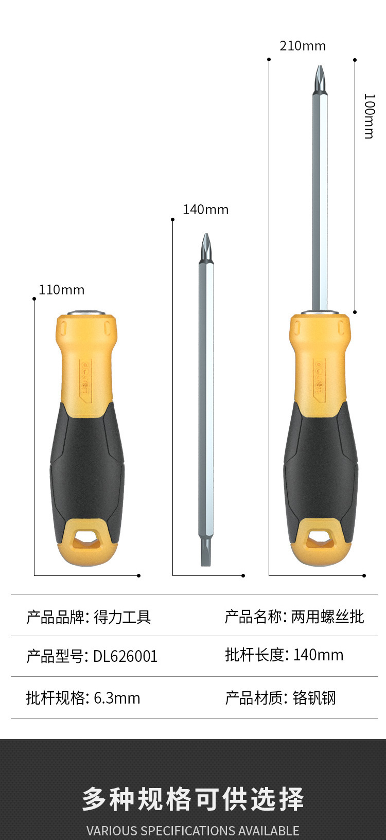 効果的なツールゴムハンドル兼用ドライバークロス型兼用両頭ドライバー 6*100 ミリメートル DL626001
