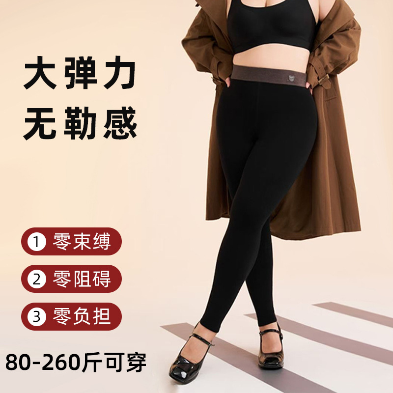 大码260斤一体裤棉打底裤女外穿秋冬加绒保暖高腰提臀收腹小黑裤