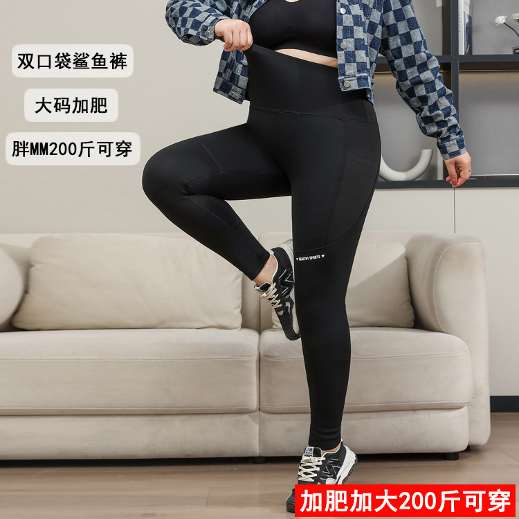 プラスサイズヨガパンツ 100kg サイドポケットファットシスターシャークパンツプラス脂肪拡大タイツ特大サイズレギンス