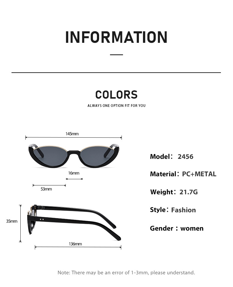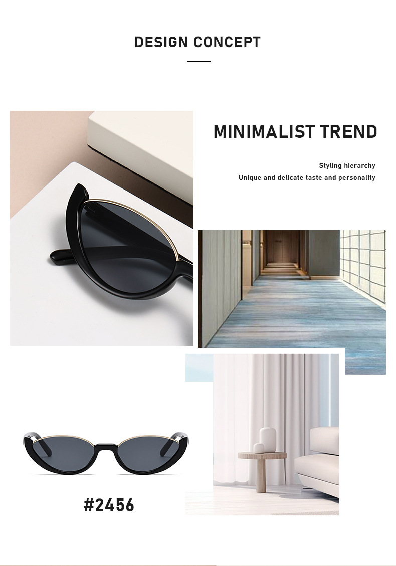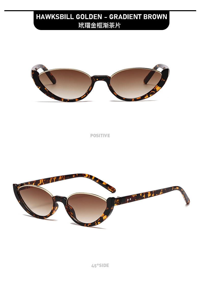 GLAZZY ヨーロッパとアメリカの新しいハーフフレームキャットアイサングラススモールフレーム無地ストリート撮影インターネットセレブ同じスタイルサングラスクロスボーダー