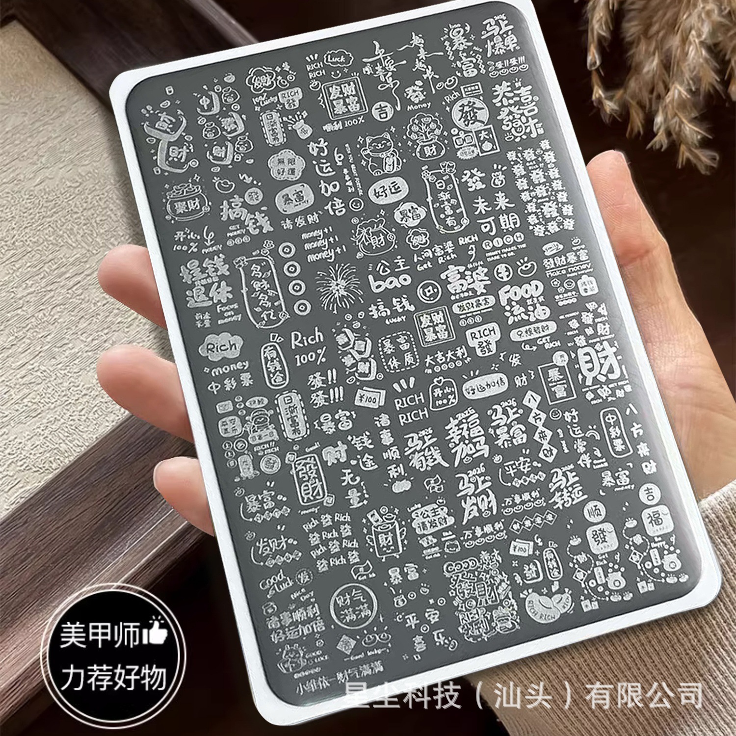 跨境直播美甲印花钢板精细转印钢板花纹财气满满图案钢板