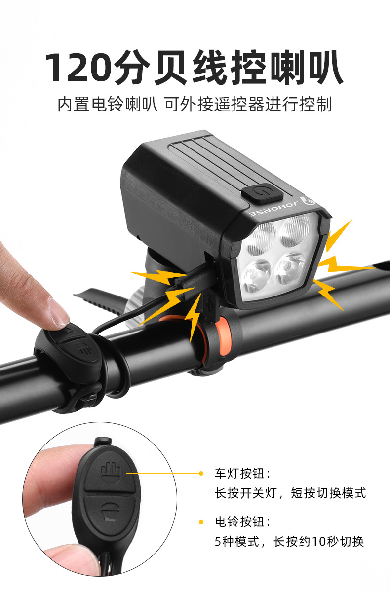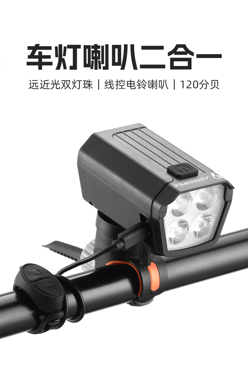 カスタマイズされた自転車ライト、夜間走行用の明るい懐中電灯、USB充電式ヘッドライト、防雨マウンテンバイクライト、サイクリングホーン