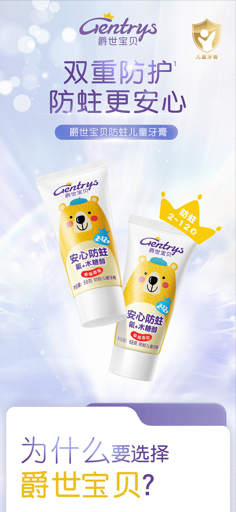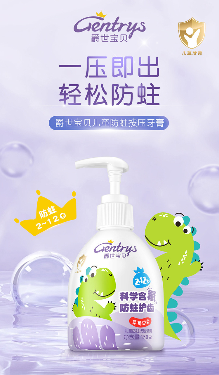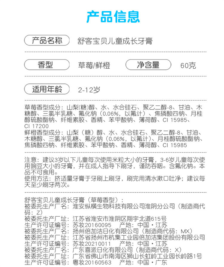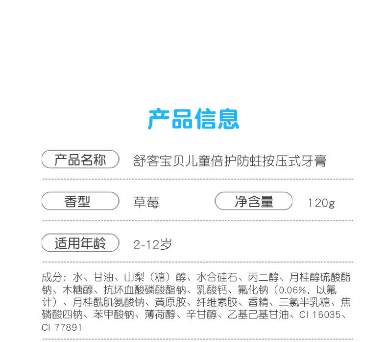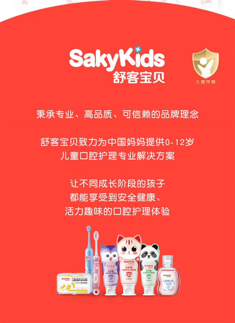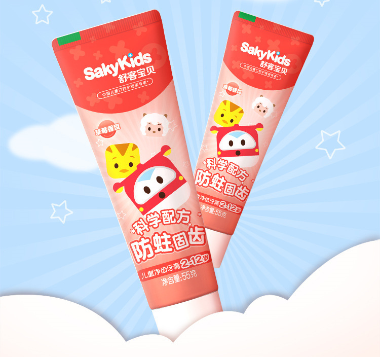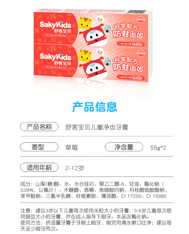 舒客儿童牙膏2-12岁防蛀健齿温和舒缓护龈草莓味热销儿童牙膏