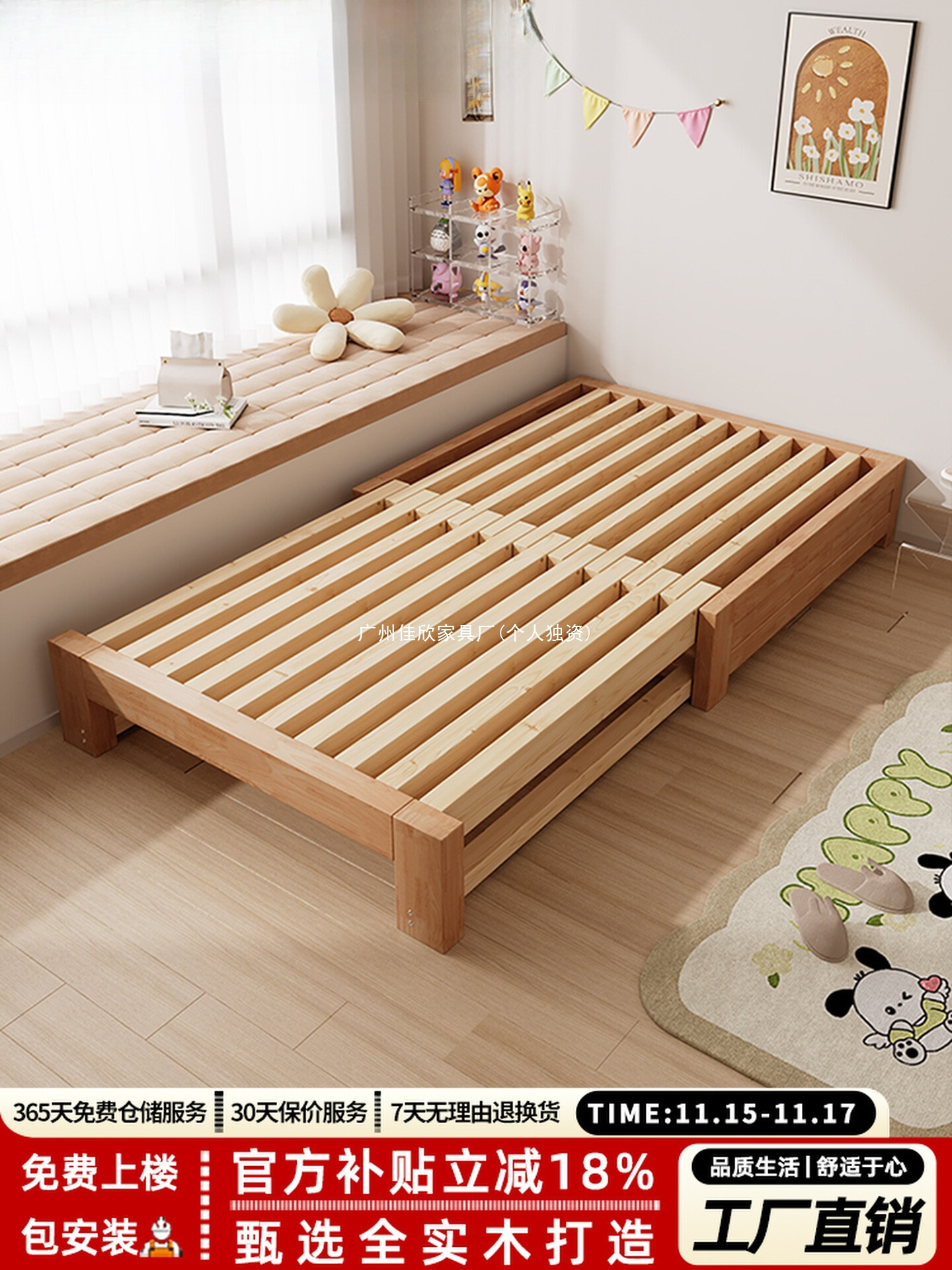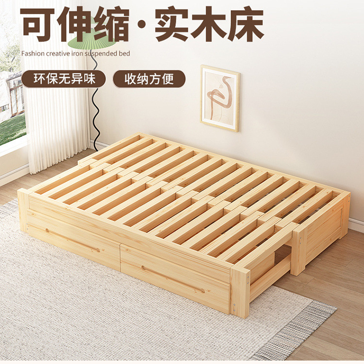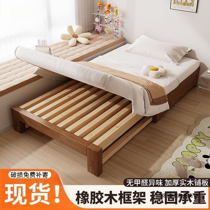 实木床小户型橡胶木沙发床客厅榻榻米抽拉床家用午休单人床伸缩床