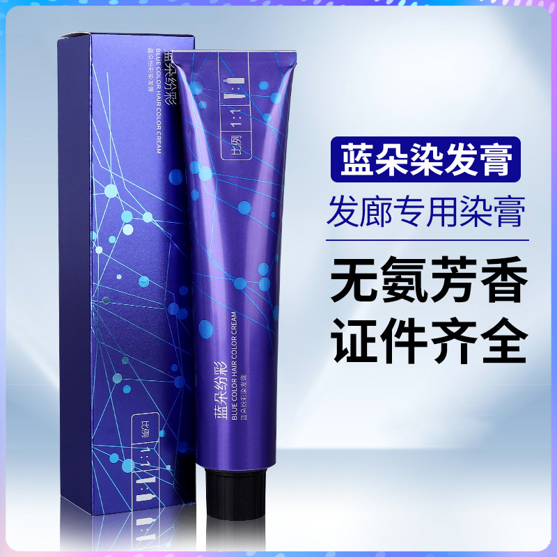 青い花のピンクカラーの髪染めクリームの髪の廊下の理髪店の専用の1匹の微潮の色の基色の温和で低いアンモニアの染めクリームの卸売り