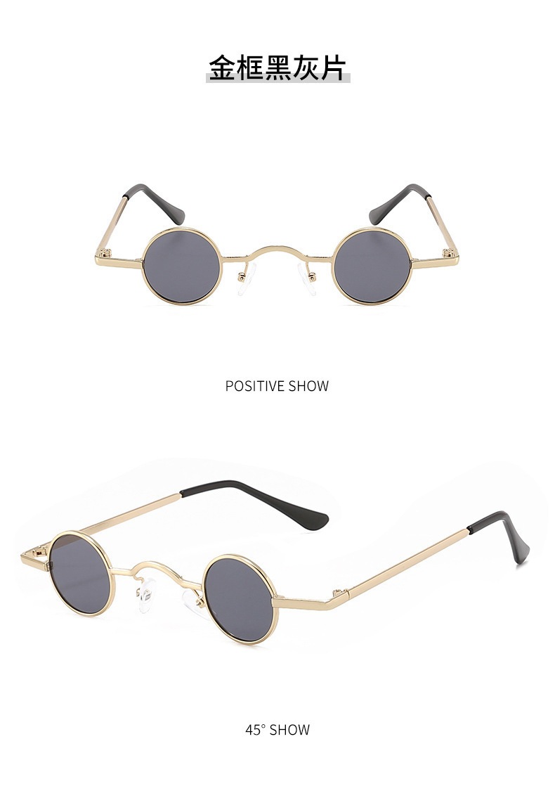 超小枠円形復古サングラス男女モデルミニ小円枠台子鏡漢奸眼鏡ヒップホップサングラス