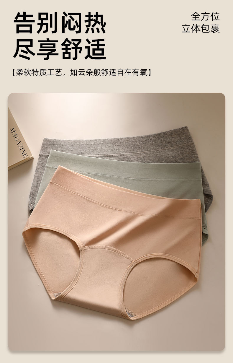 5A長絨毛綿高腰腹下着女性純綿快適肌純色女性下着純綿股間5A抗菌