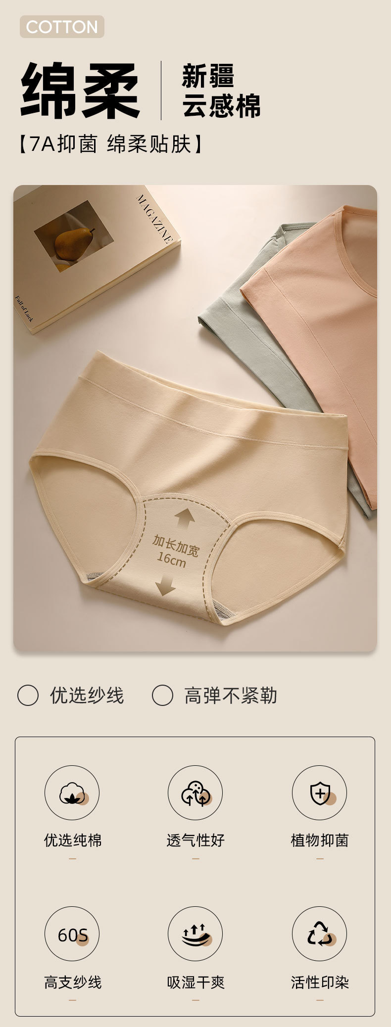 60S新疆精櫛綿7A抗菌延長綿綿綿綿下着シンプル女性下着A類無痕下着女性