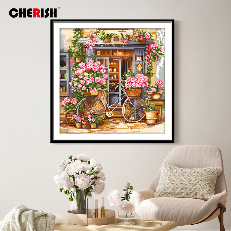 十字刺繍ロマンチックな部屋2025年の新しい花卉掛け画客間レストラン寝室の手作り刺繍を大切にしている