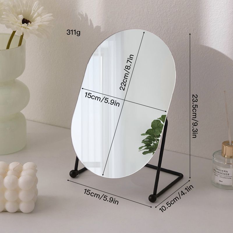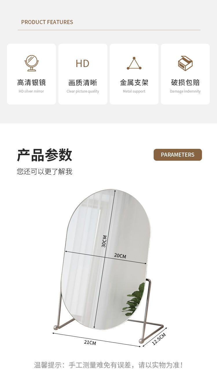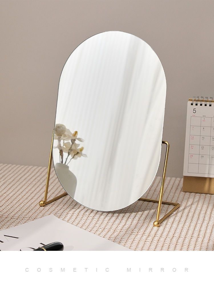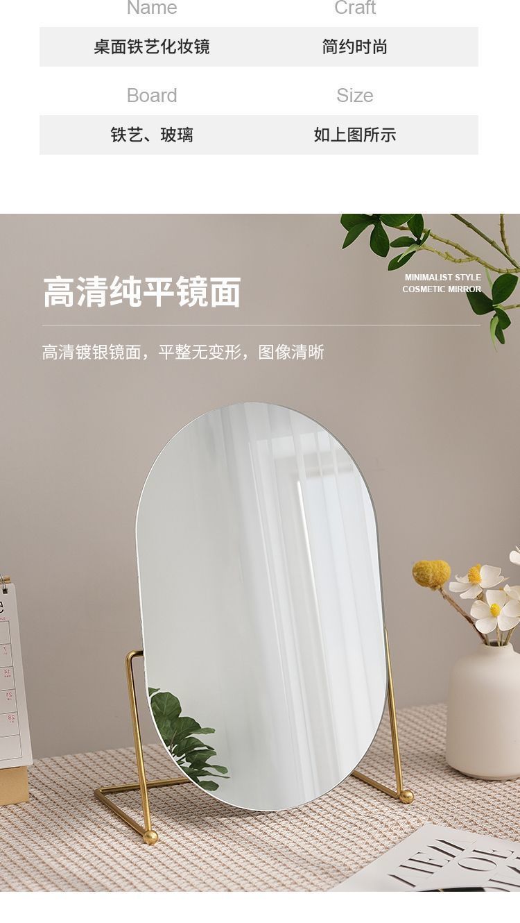 ドレッシングテーブル化粧鏡寝室ホームデスクトップ化粧鏡寮美容ミラーライト高級楕円形鉄ミラー