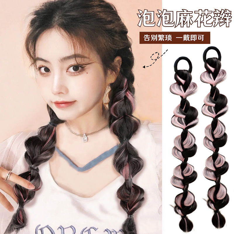 ウィッグ三つ編みバブル三つ編み麻三つ編み花カラフルなロング三つ編みポニーテール女性 y2k 遊び心のあるかわいいナチュラルランタン三つ編み