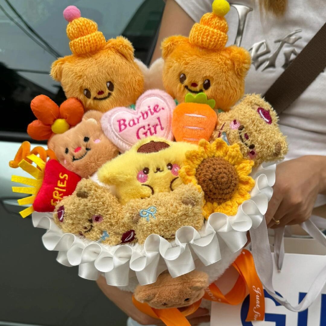 クリスマスやバレンタインデーに、バタークマのぬいぐるみブーケを彼女や親友に贈る、漫画風でクリエイティブな誕生日プレゼント