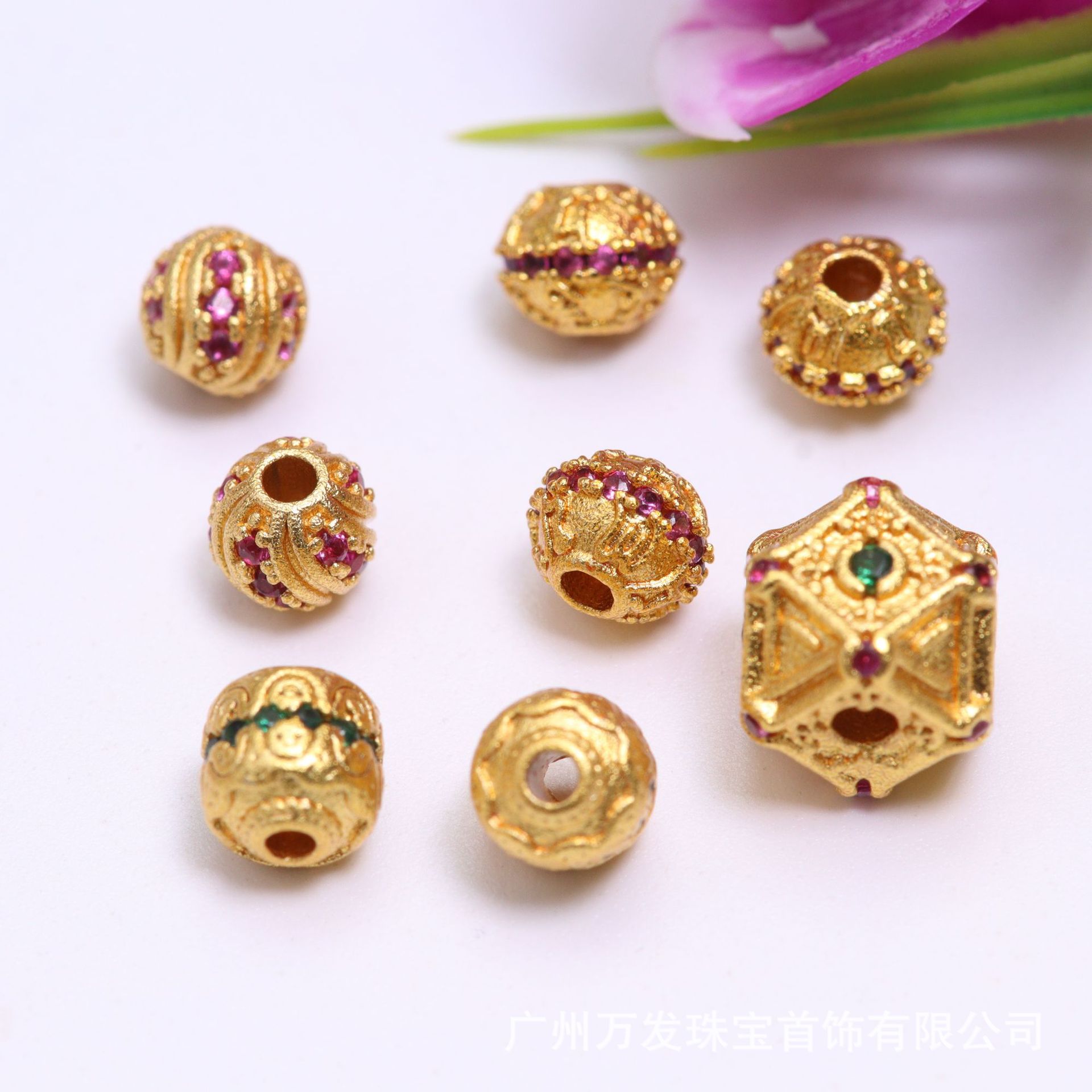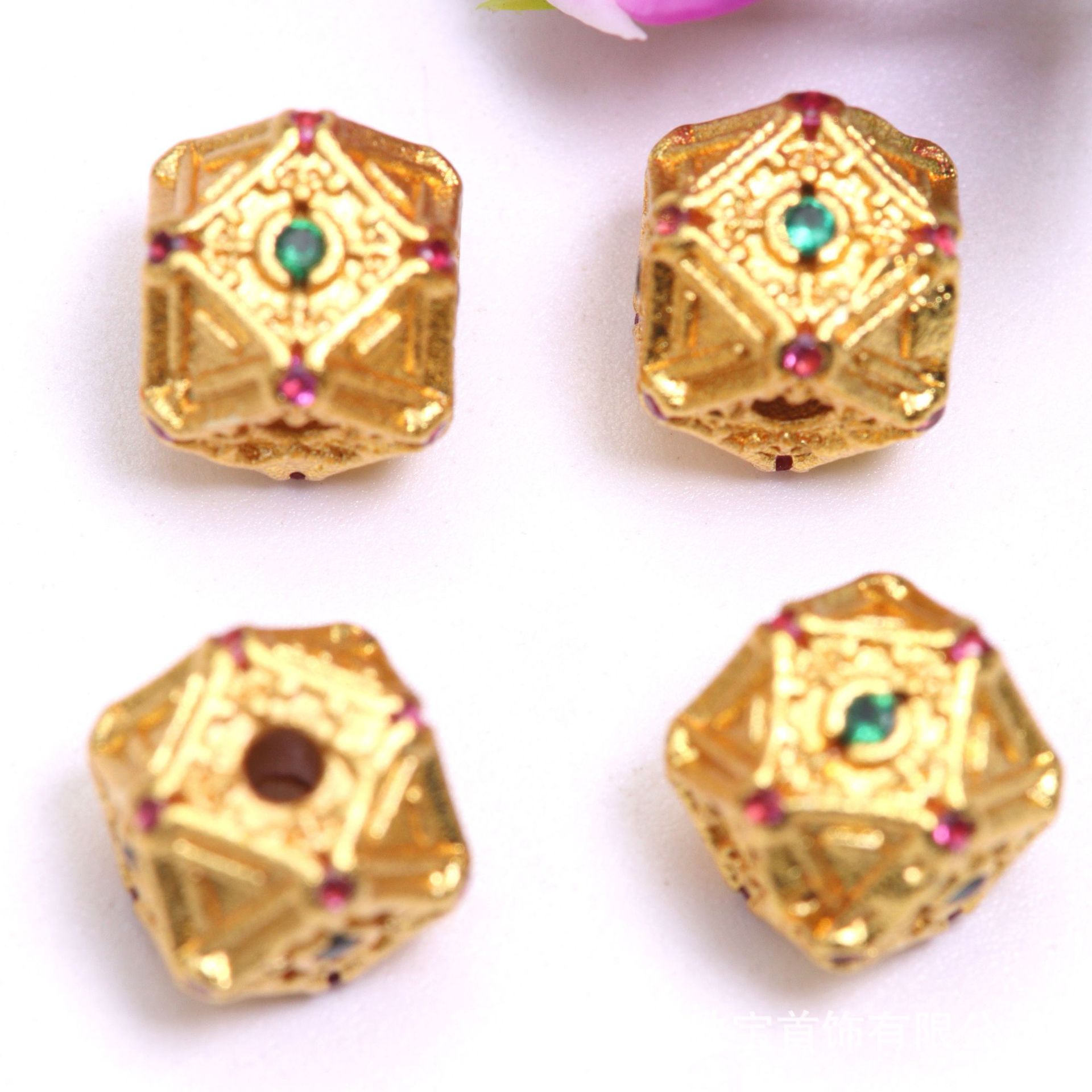 保色14K包金镶钻镂空花托花帽隔片隔珠手链 diy水晶手串珠饰品配