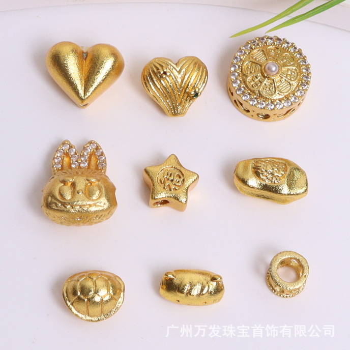沙金保色五角星小白兔爱心 diy手工饰品配件项链手链串珠隔珠材料