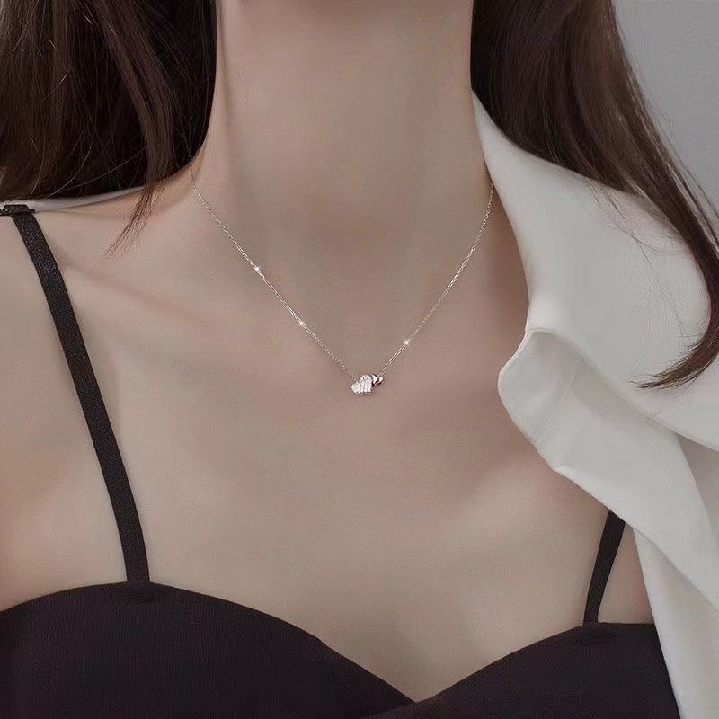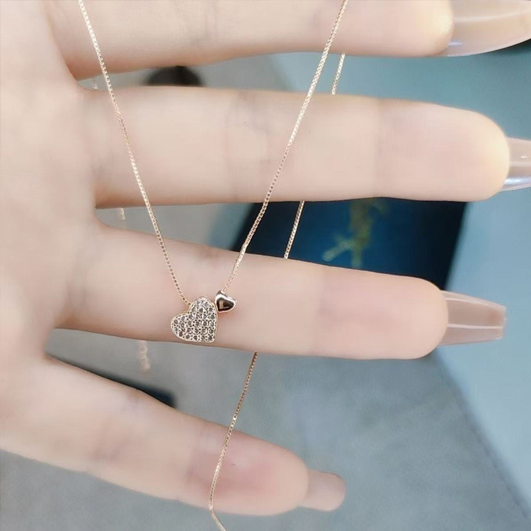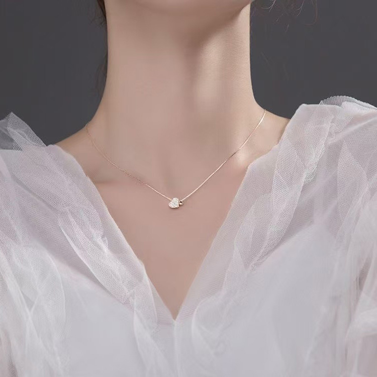 甜美气质简约爱心项链女款小清新秋冬通勤锆石心形锁骨链批发礼物