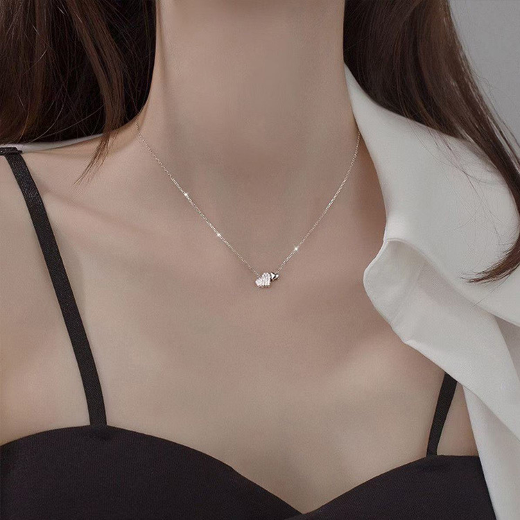 女性用ダブルラブジルコンネックレス、軽い高級感、多用途のニッチデザイン、ハート型ペンダント、鎖骨チェーン、ガールフレンド用ジュエリー