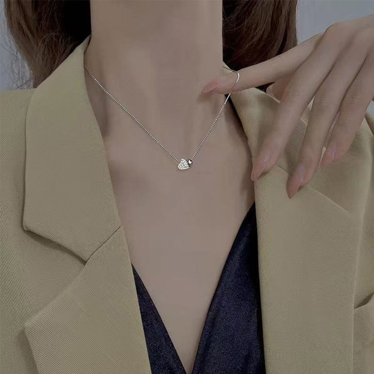 マイクロインレイドの輝くダイヤモンドハートネックレス レディース 2026年新作 エレガントで軽やかな高級感のあるペンダント 高級感あふれる万能な鎖骨ネックレス カスタムメイド