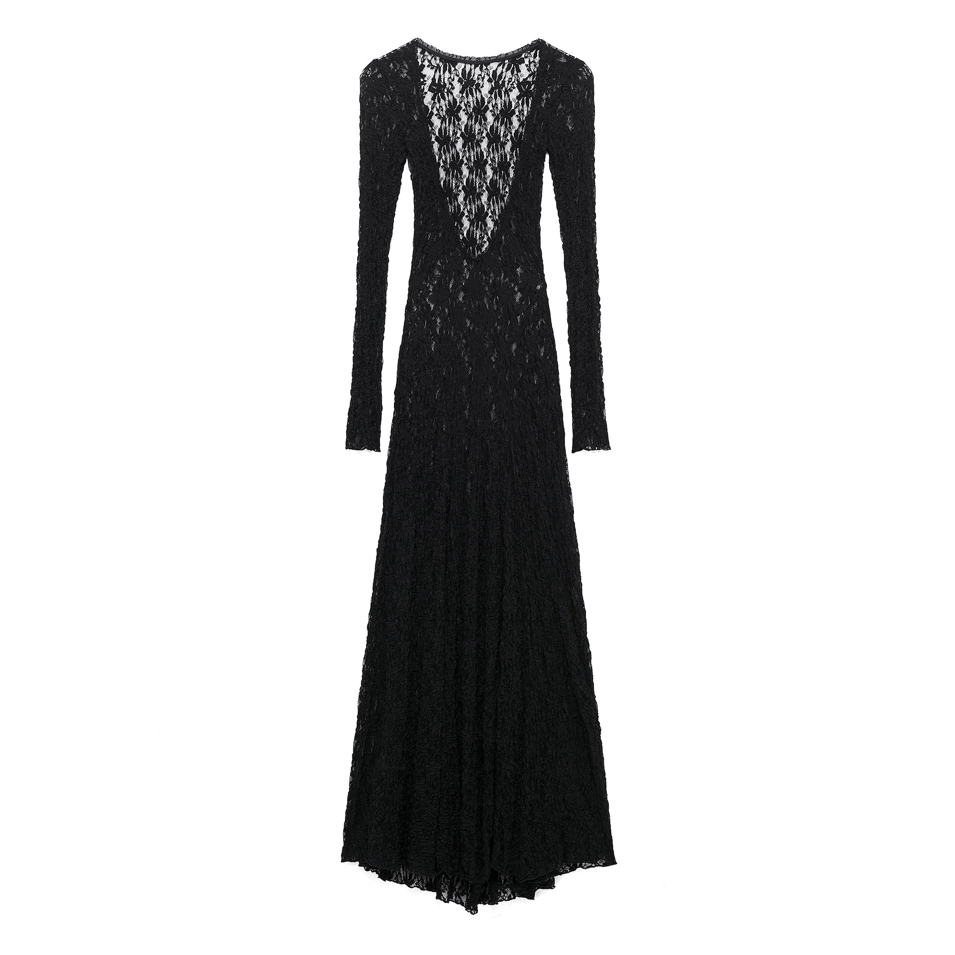 クロスボーダー外国貿易婦人服2025春新作カジュアル純色レース露背長袖ワンピース