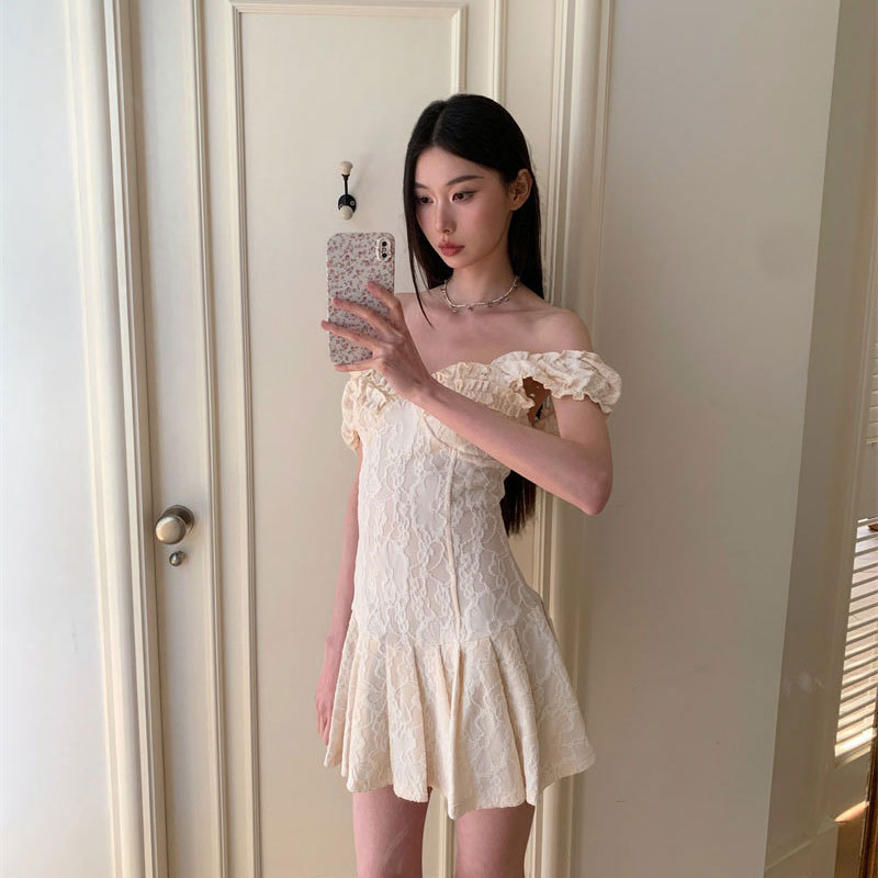 ワンピースの女性のデザイン感が小さいです。ジャカードレースの木の耳元の方の襟はスリムに見えます。