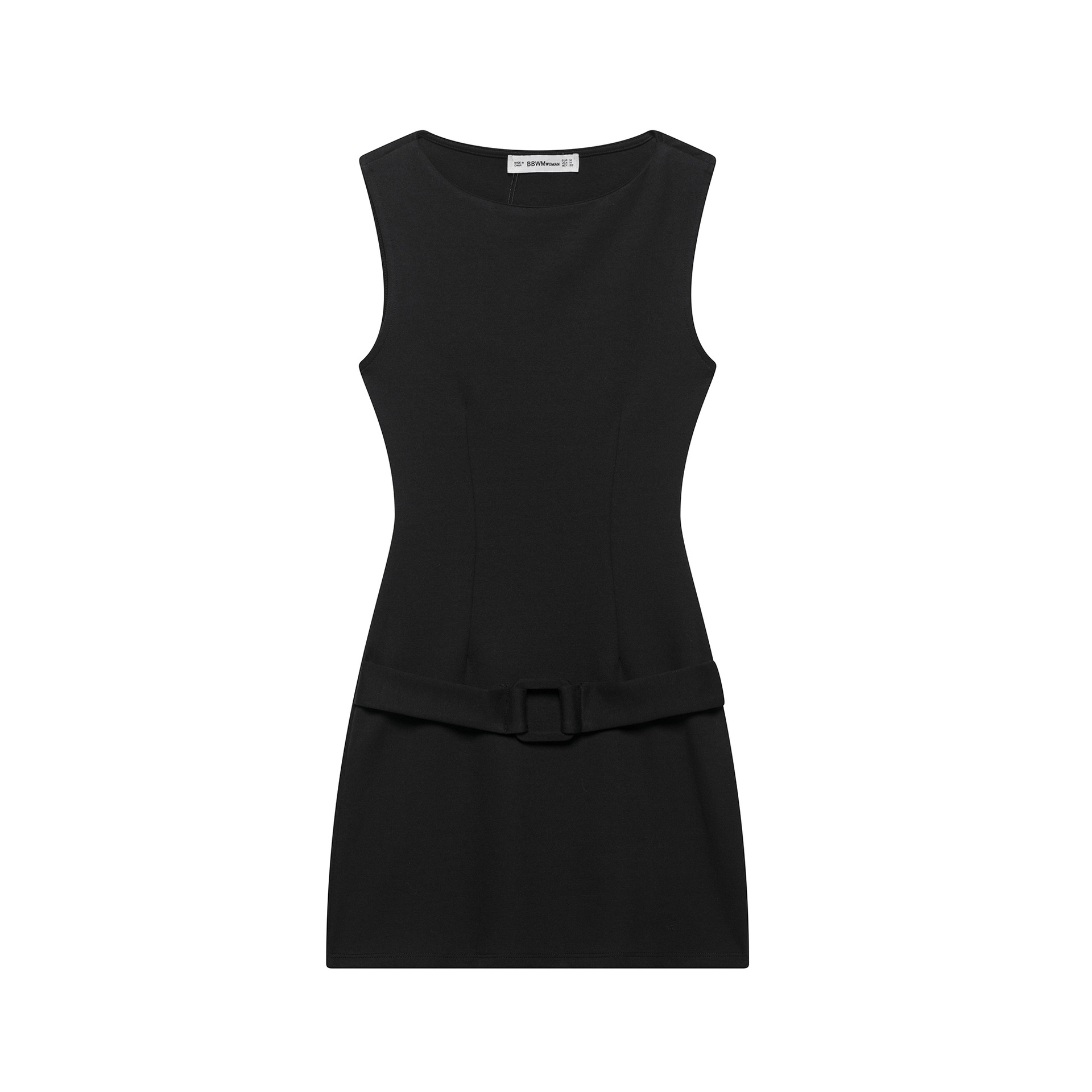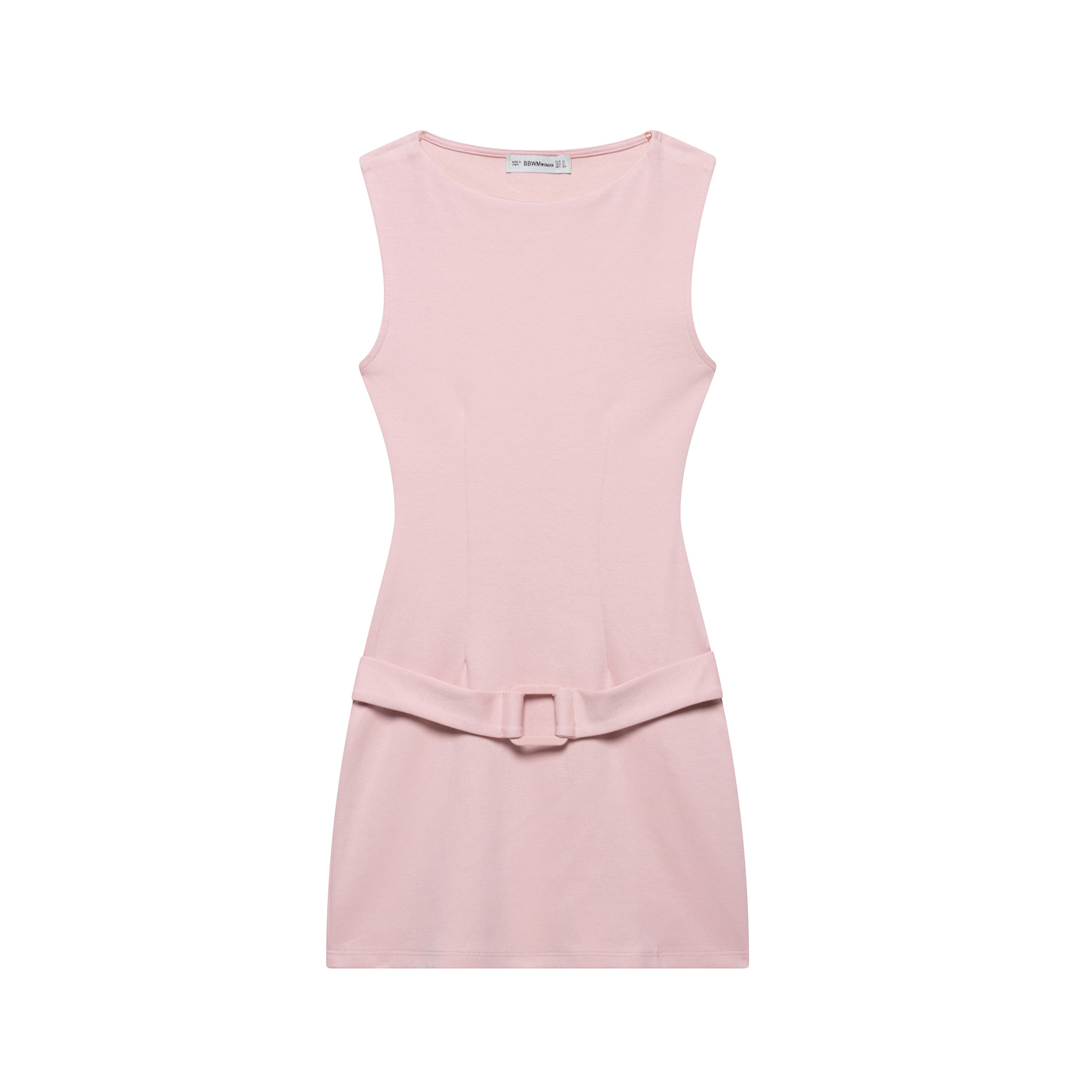 2025年春新作、多用途でカジュアルな雰囲気の無地ベルト付きノースリーブショートワンピース(越境貿易婦人服)