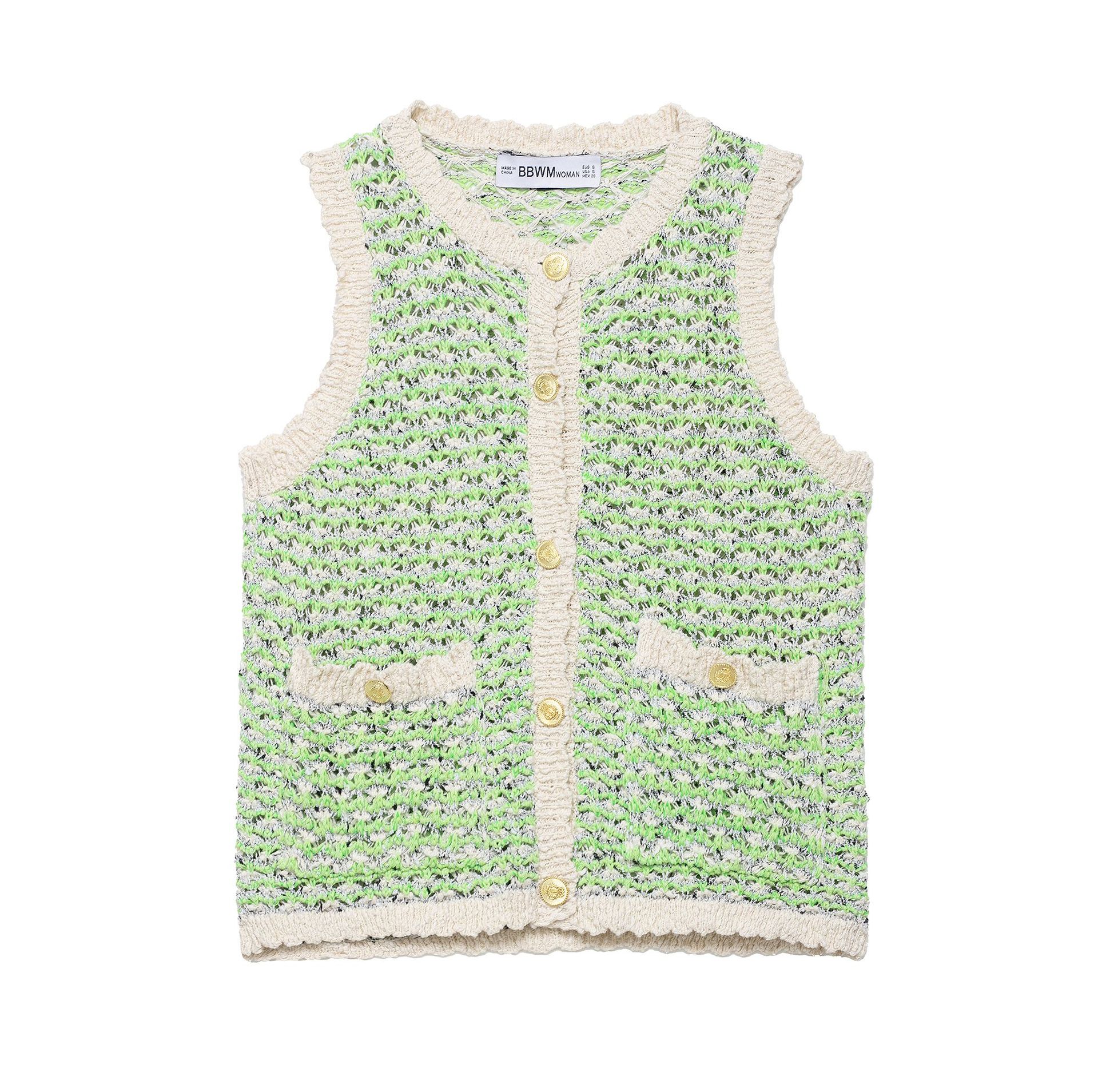 2025年春新作 欧米風万能カジュアル無地ベルト付きビーズ装飾粗織ベスト(越境貿易婦人服)