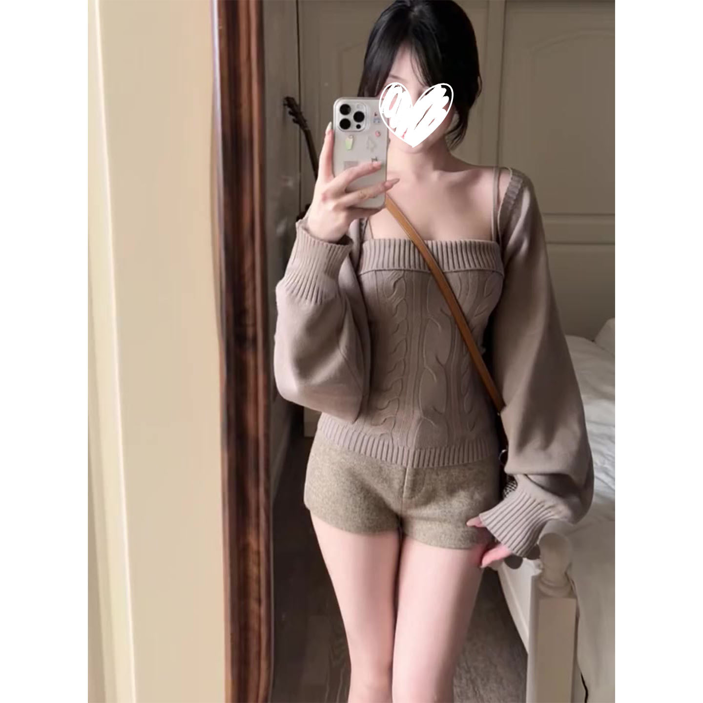 韩系针织长袖开衫内搭吊带背心女秋冬新款温柔风软糯上衣两件套装