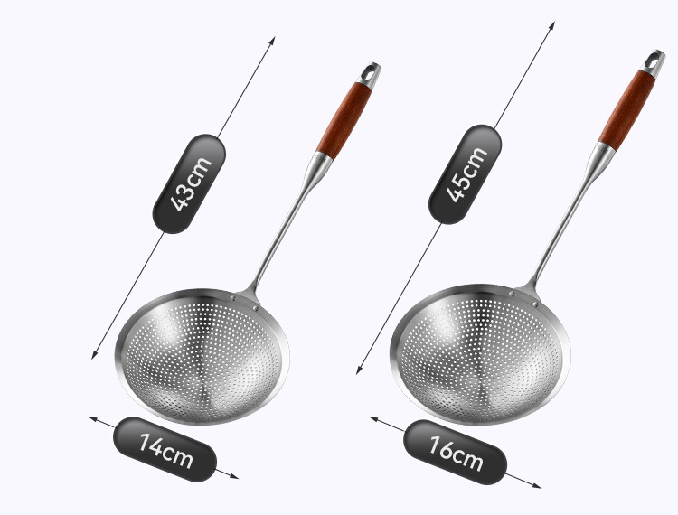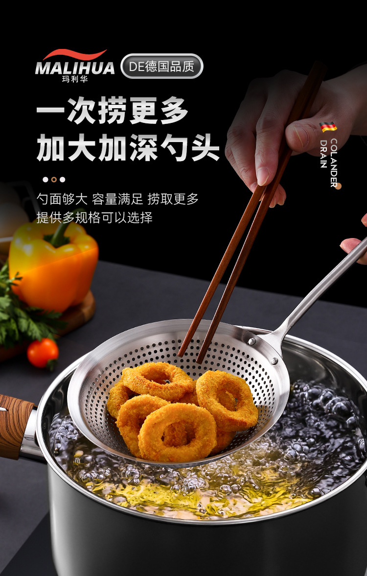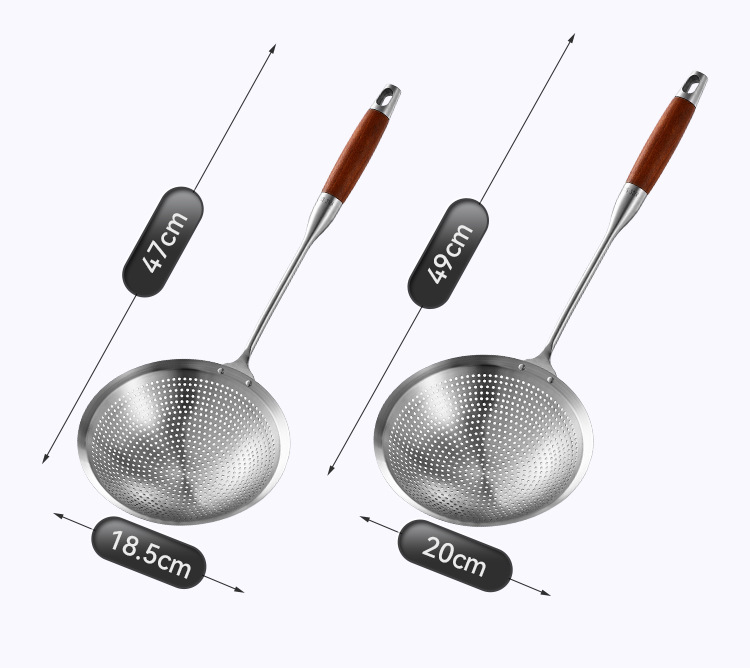 304ステンレス鋼食品グレード家庭用キッチン316ザル鍋用揚げ物用長柄餃子麺用スプーン(ダブルフック付き)