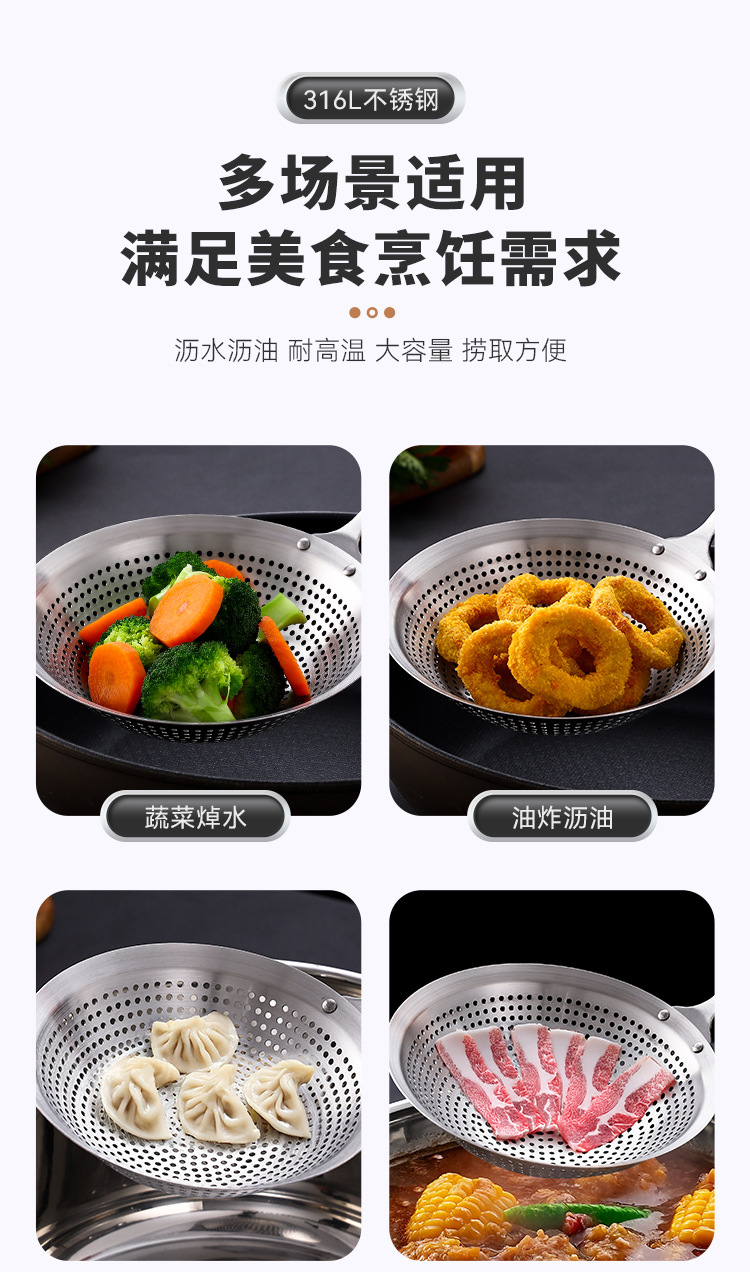 不锈钢漏勺304食品级大号家用厨房316漏勺火锅笊篱油炸饺捞面勺