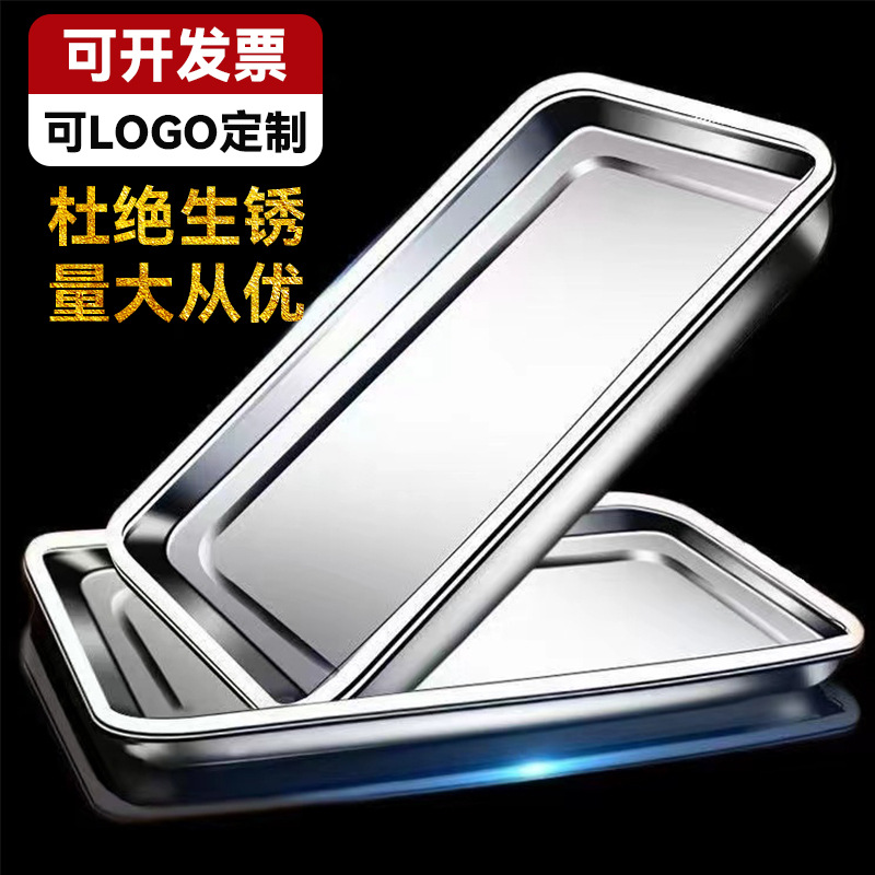 トレイ ステンレスプレート 長方形 極厚角プレート 蒸しご飯プレート 業務用 家庭用野菜プレート 餃子プレート バーベキュープレート