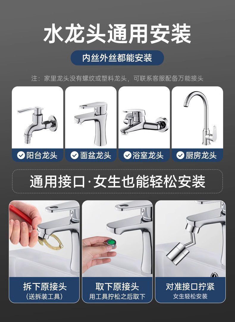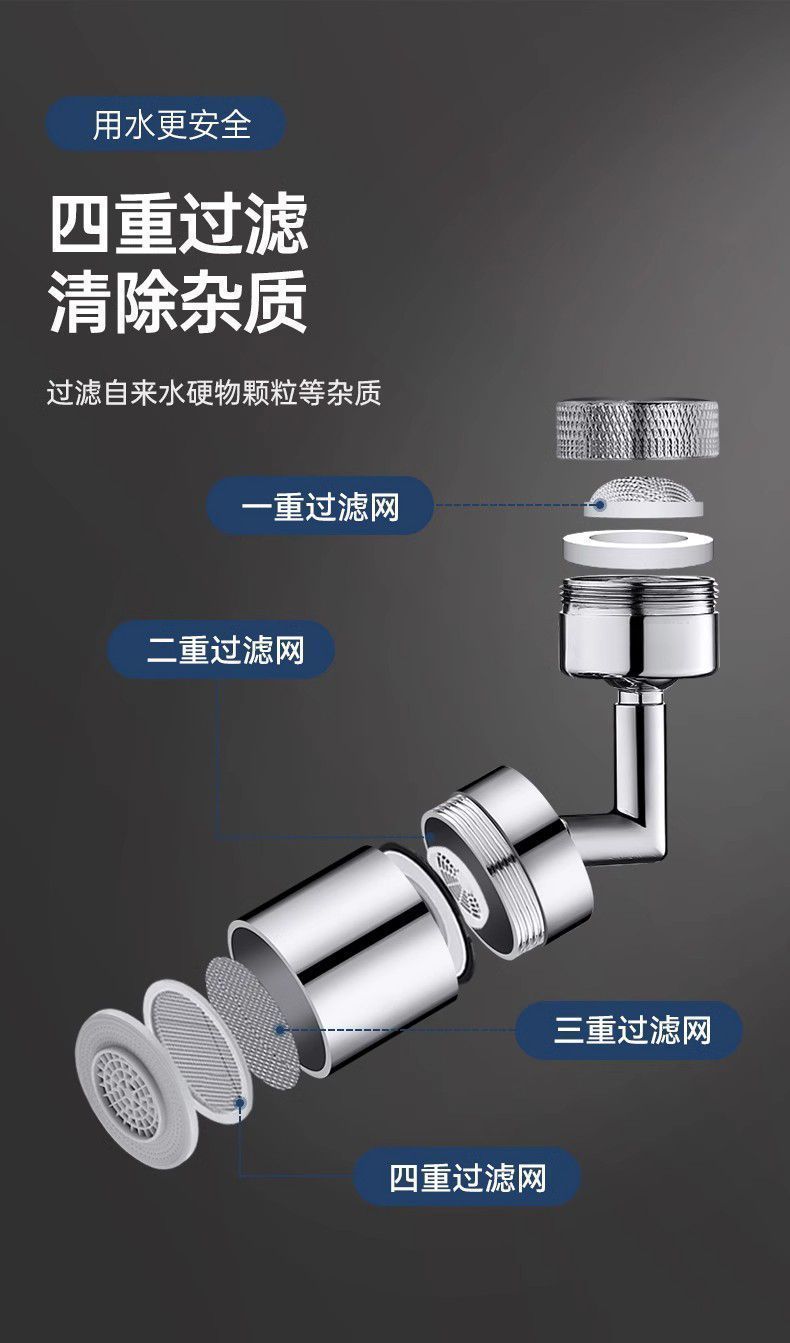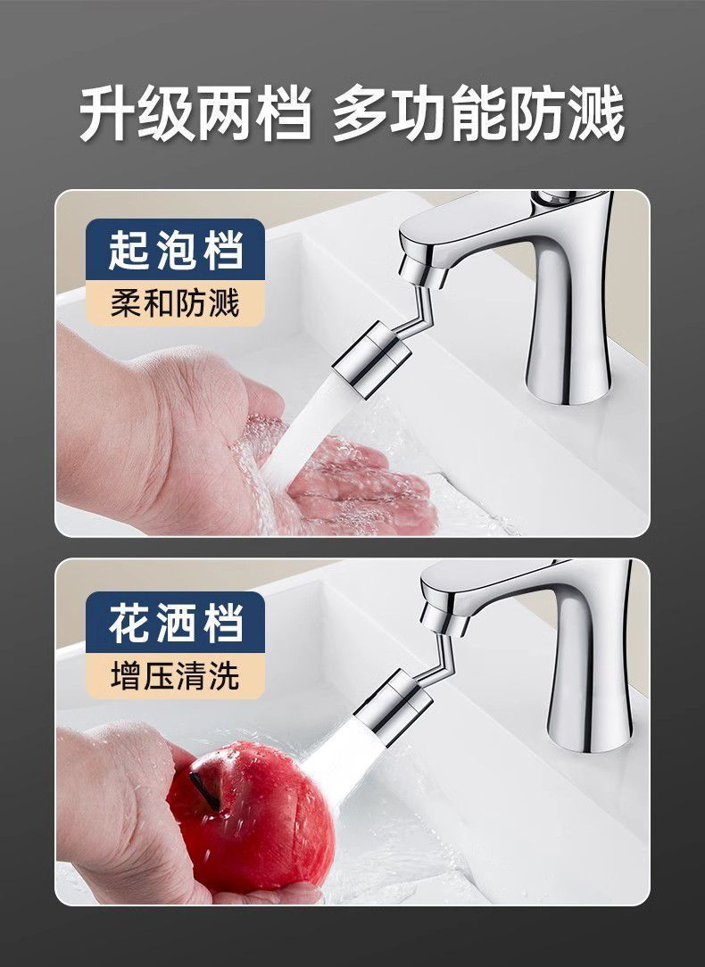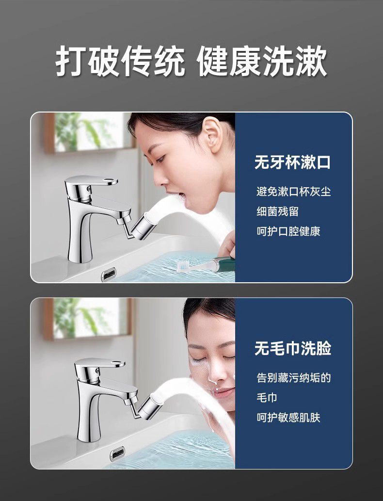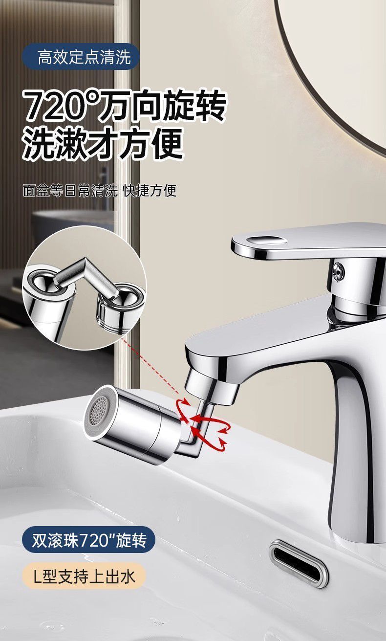 全铜机械臂万向水龙头延伸器转换接头洗漱台多功能过滤出水嘴防溅