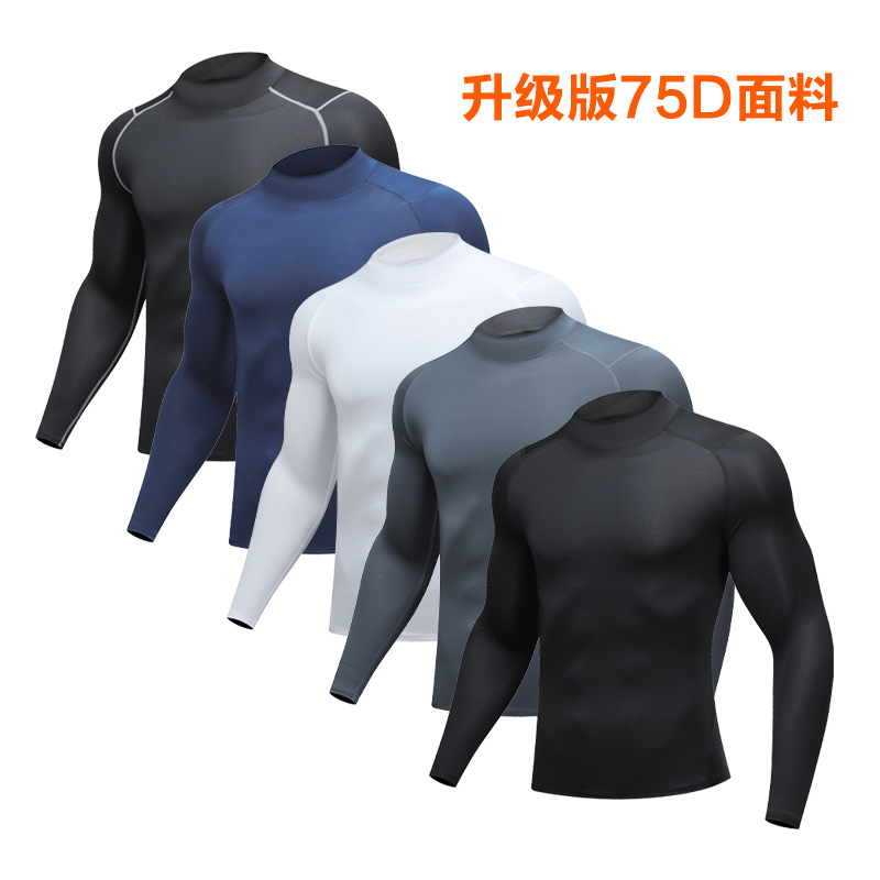 运动服饰加绒长袖男篮球运动冬季健身套装速干T恤跑步训练紧身衣