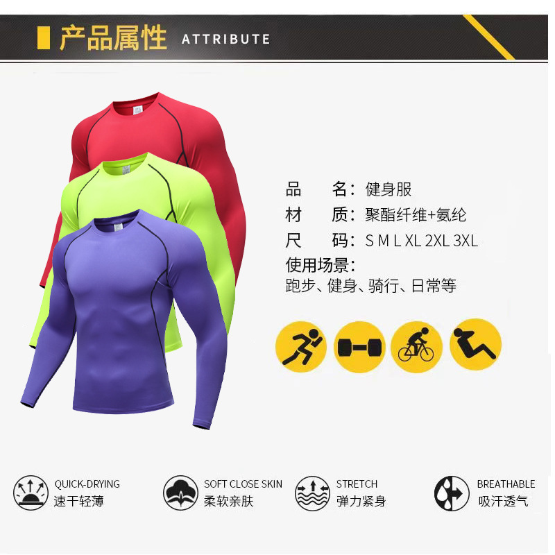 ソリッドカラースポーツタイトフィットカラフルな長袖速乾性ベースレイヤー弾性通気性ランニングバスケットボールサッカー吸汗性トレーニング服