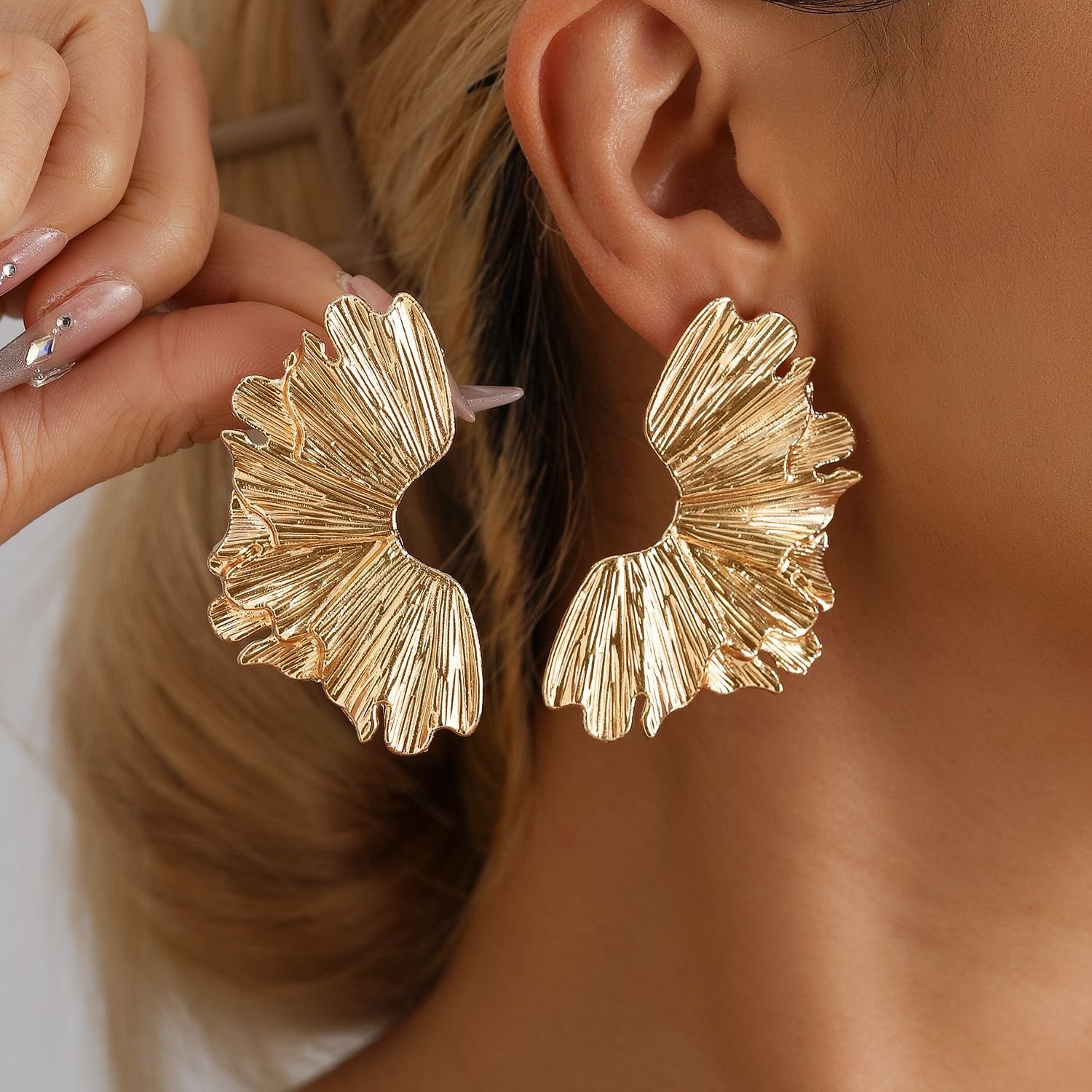 欧米のクロスボーダーのアクセサリーinsのしわの幾何学の四角形の光沢のイヤリングは誇張して軽くて豪華な高級感のピアスの女性です。