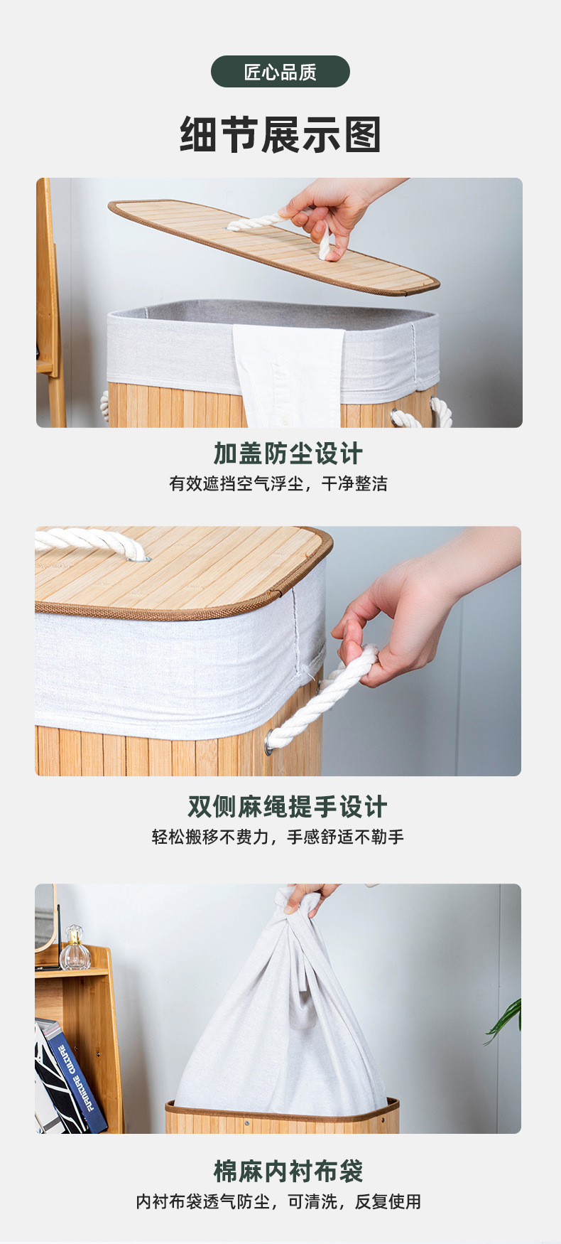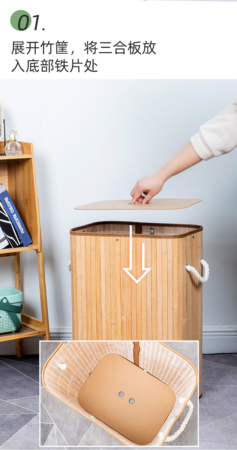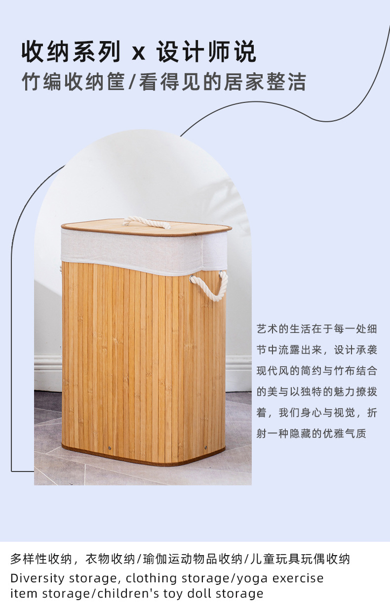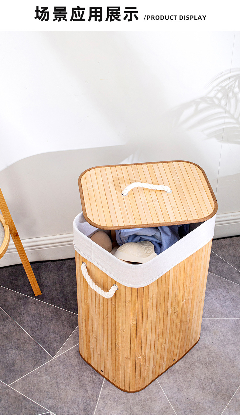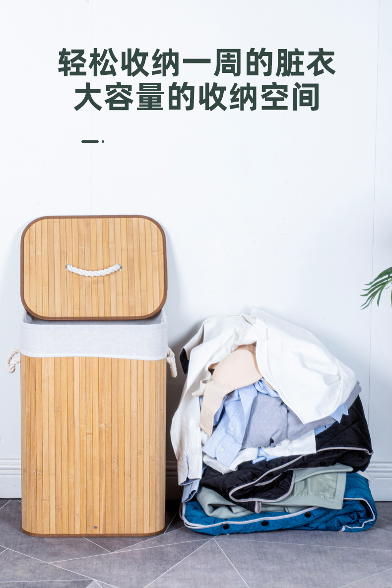 跨境亚马逊脏衣篓防尘洗衣篮子折叠竹制竹编收纳筐竹制编织脏衣篮