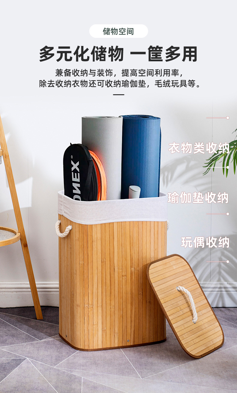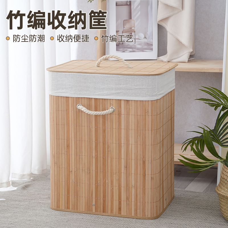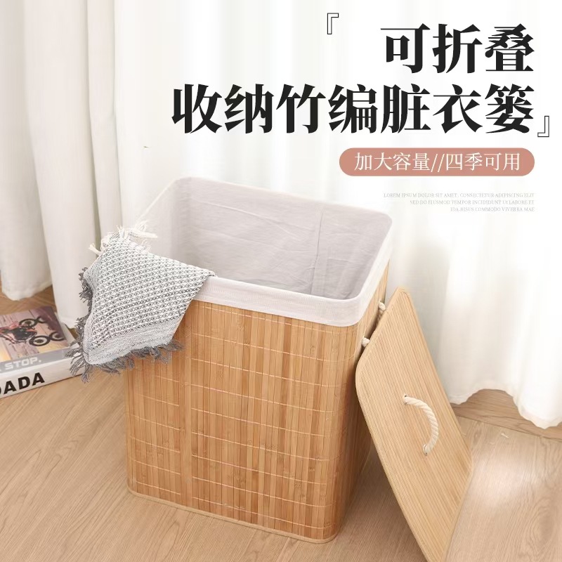 跨境防尘洗衣篮子脏衣篓竹编收纳筐竹制折叠编织脏衣服收纳桶批发