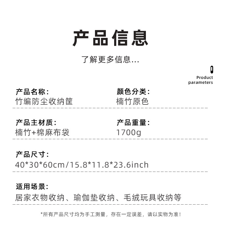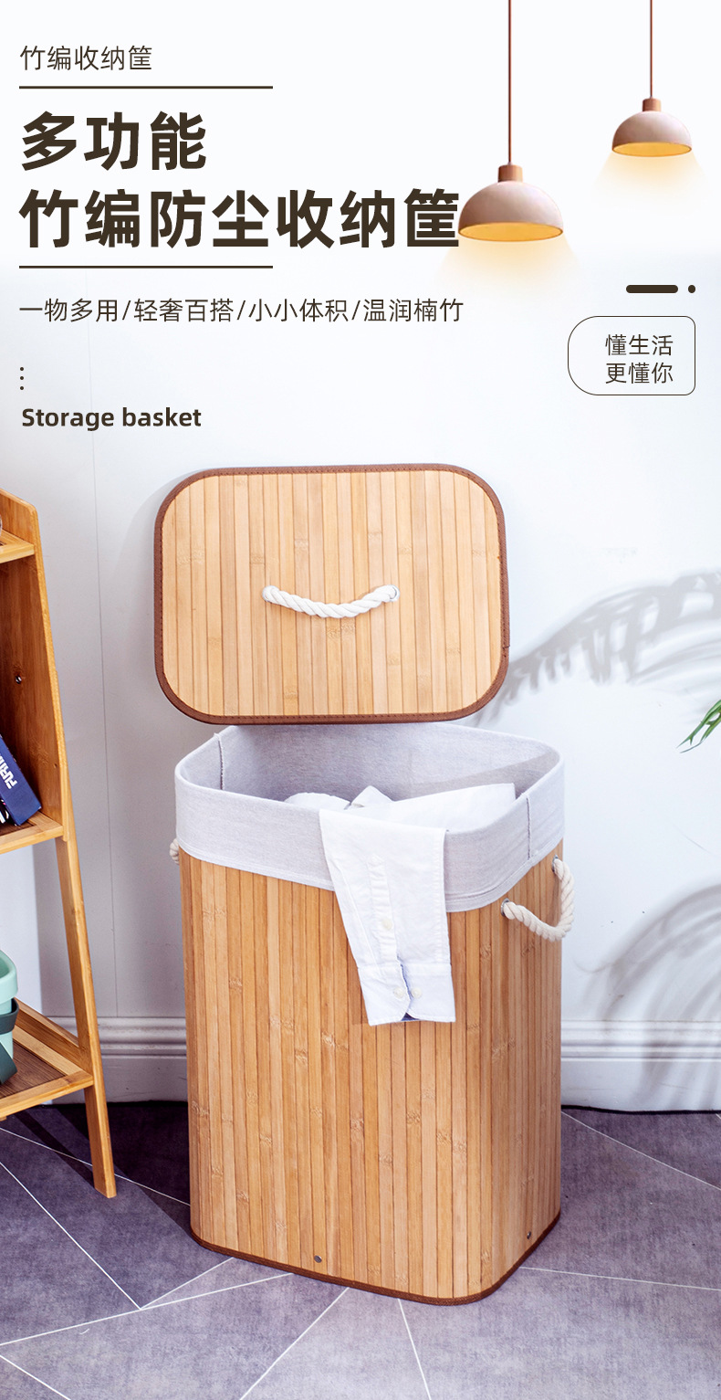 跨境防尘洗衣篮子脏衣篓竹编收纳筐竹制折叠编织脏衣服收纳桶家居
