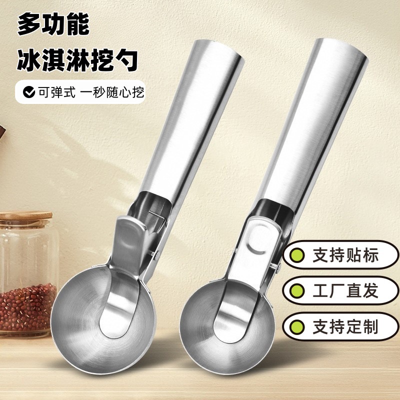 ステンレス製アイスクリームスプーン、多機能アイスクリームスプーン、リバウンドボールスクレーパー、アイスクリームスクープ、フルーツボールスクレーパー