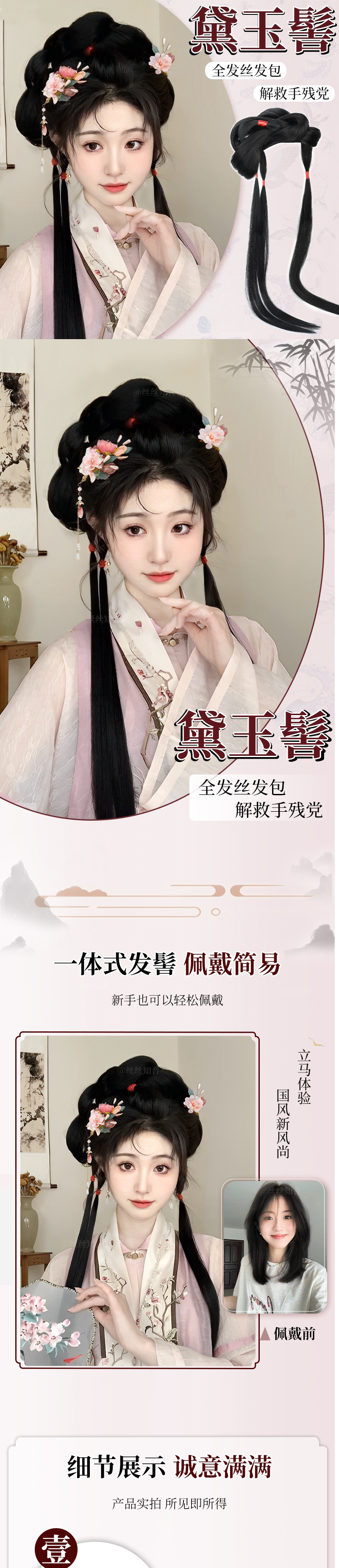 時代劇の漢服のかつらの一体式の紅楼の夢の林黛玉の鋳型の怠け者の髪の毛の髪のかつらの包み