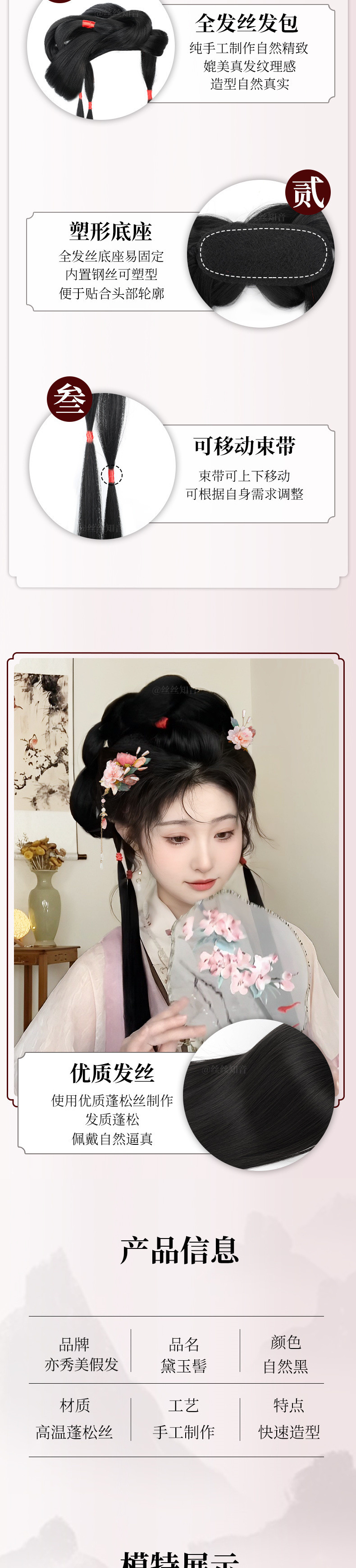 古代風ウィッグパッケージ原料、ウィッグシルク、髪のボリュームが豊かで柔らかい、エスニックヘアスタイル専用化学繊維シルク